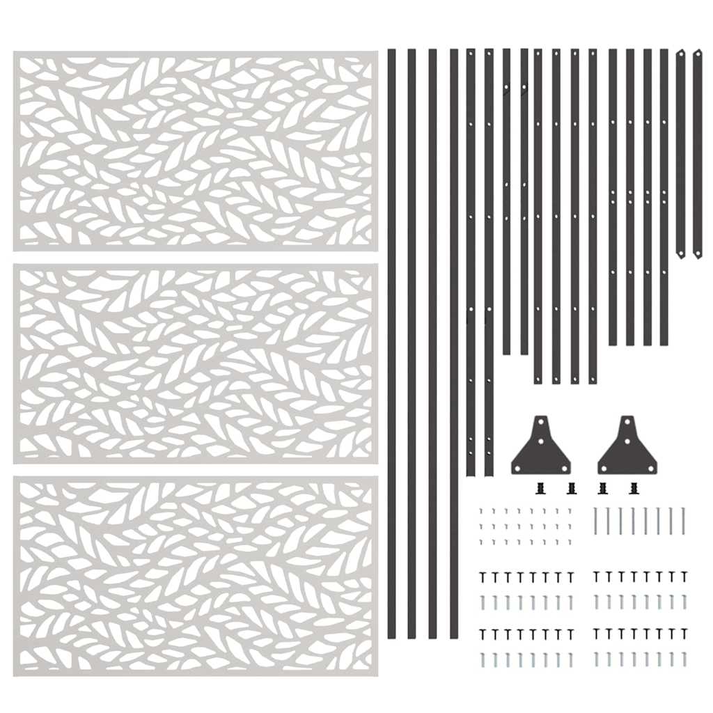 - Materiale: Ecranul de Intimitate pentru Grădină e făcut din oțel rezistent, ce se știe că e durabil și de lungă durată. E ales să reziste vremii și să păstreze un aspect elegant, asigurându-ți un produs care arată bine și funcționează bine. Rezistența lui îl face o alegere smart pentru a menține grădina ordonată de-a lungul anilor.