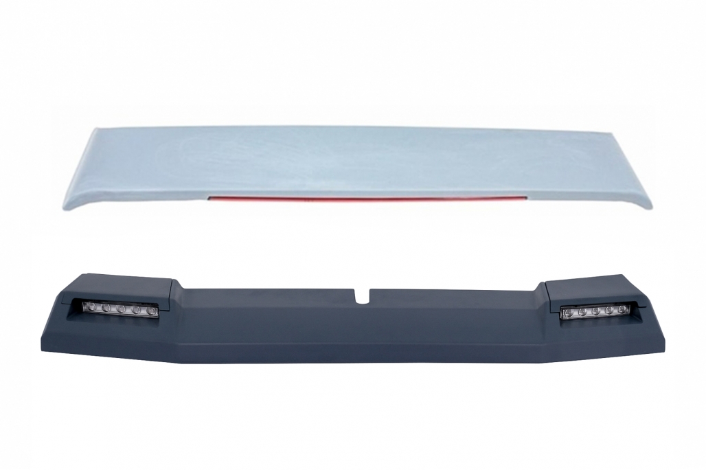 Eleron Frontal 6x6 Design Echipat cu LED, fabricat din plastic ABS de cea mai buna calitate Eleronul este pregatit pentru procesul de vopsire Eleron Portbagaj echipat cu stop frana LED, fabricat din plastic ABS de cea mai buna calitate Eleronul este pregatit pentru procesul de vopsire