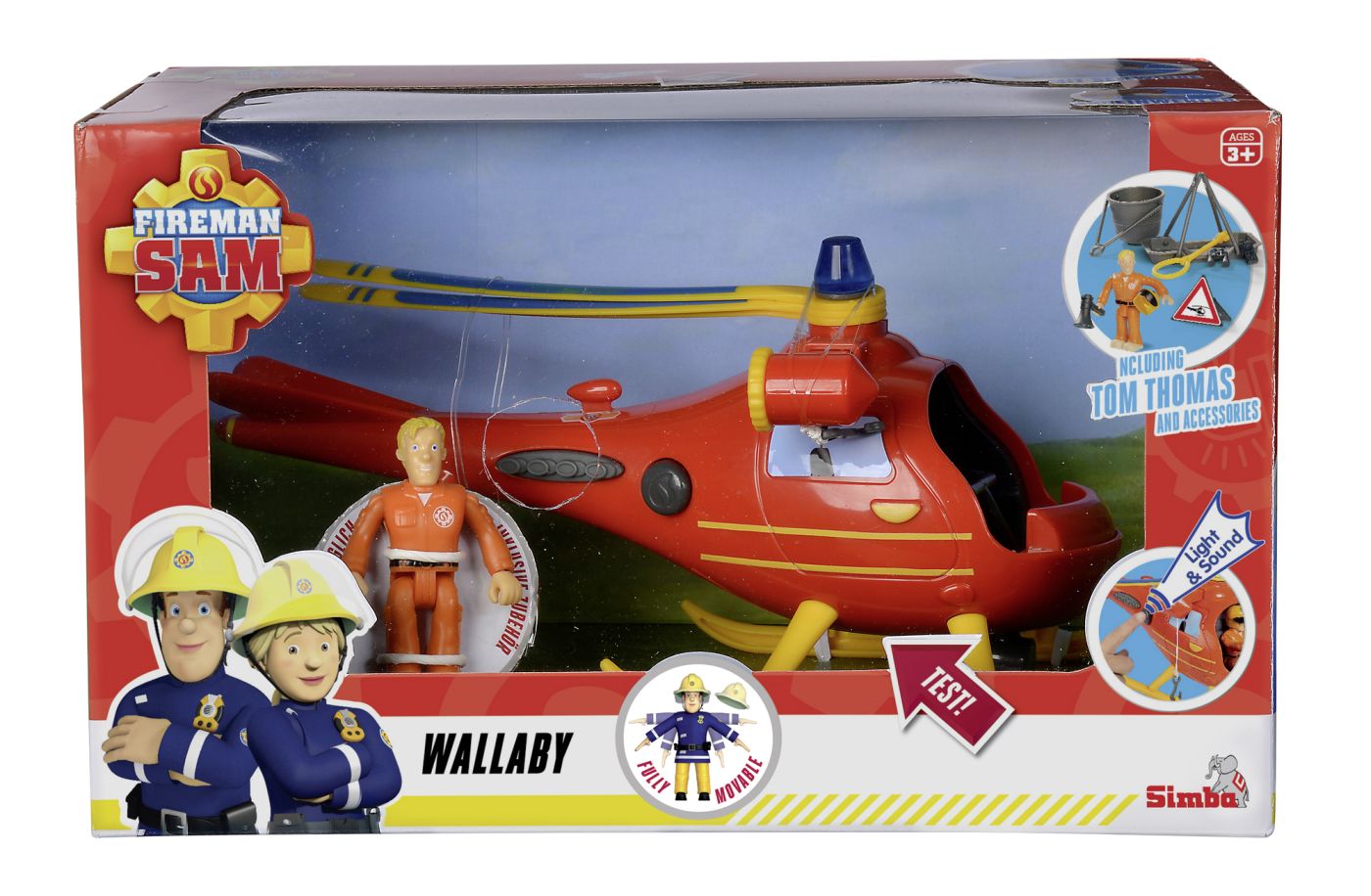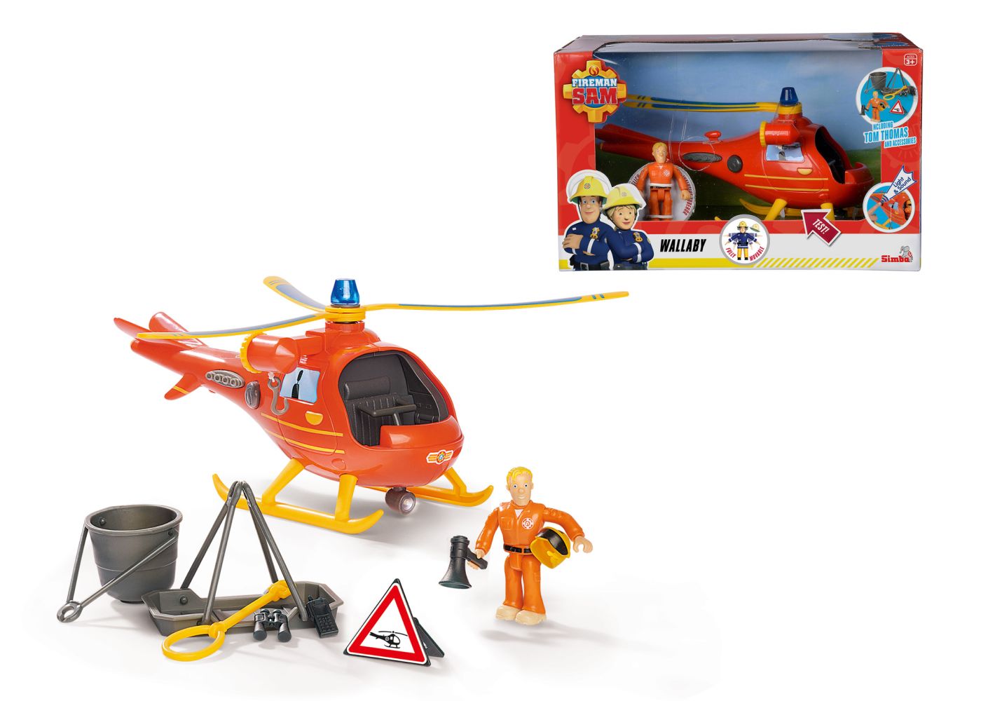 Pregatit pentru misiuni spectaculoase, elicopterul Wallaby Pompierul Sam aduce mai aproape universul indragit al eroilor de salvare. Jucaria include figurina Tom Thomas, efecte de sunet original, lumini de cautare si o elice mecanica activata prin buton, pentru o experienta de joaca plina de actiune si imaginatie.