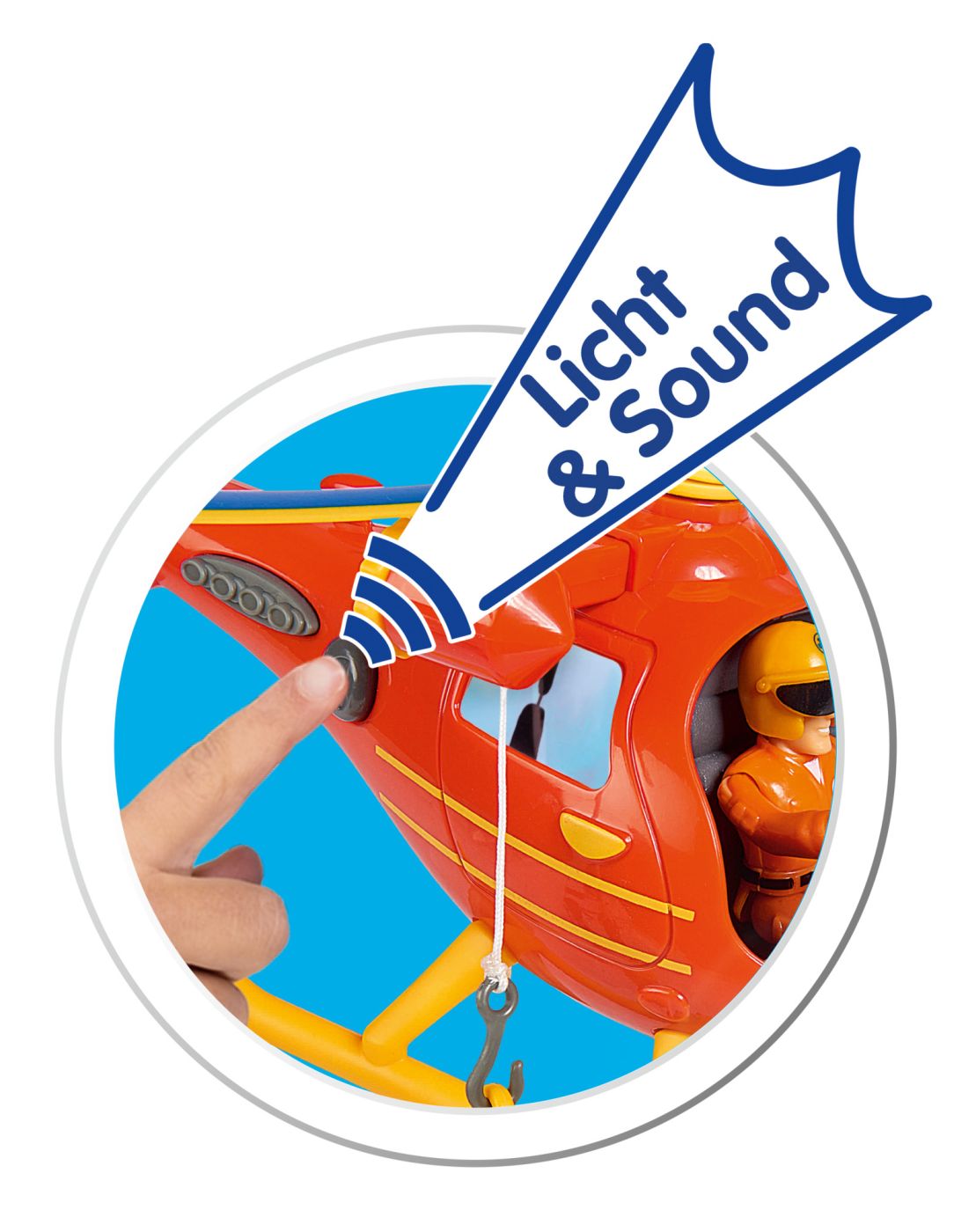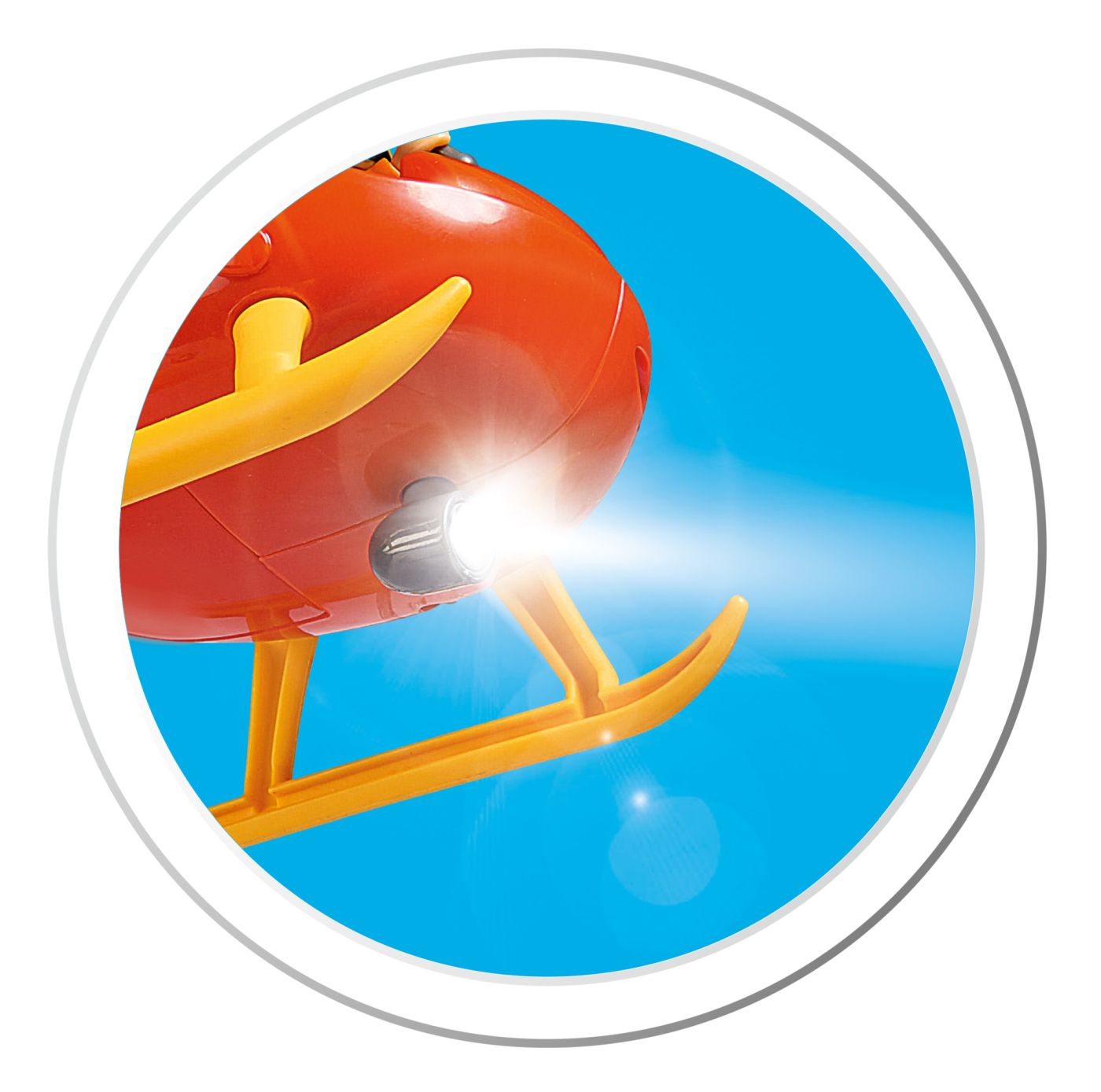 Utilizare: apasa butonul din spatele elicopterului pentru a activa elicele si luminile, apoi foloseste accesoriile pentru a crea misiuni de salvare aeriana inspirate din serial.