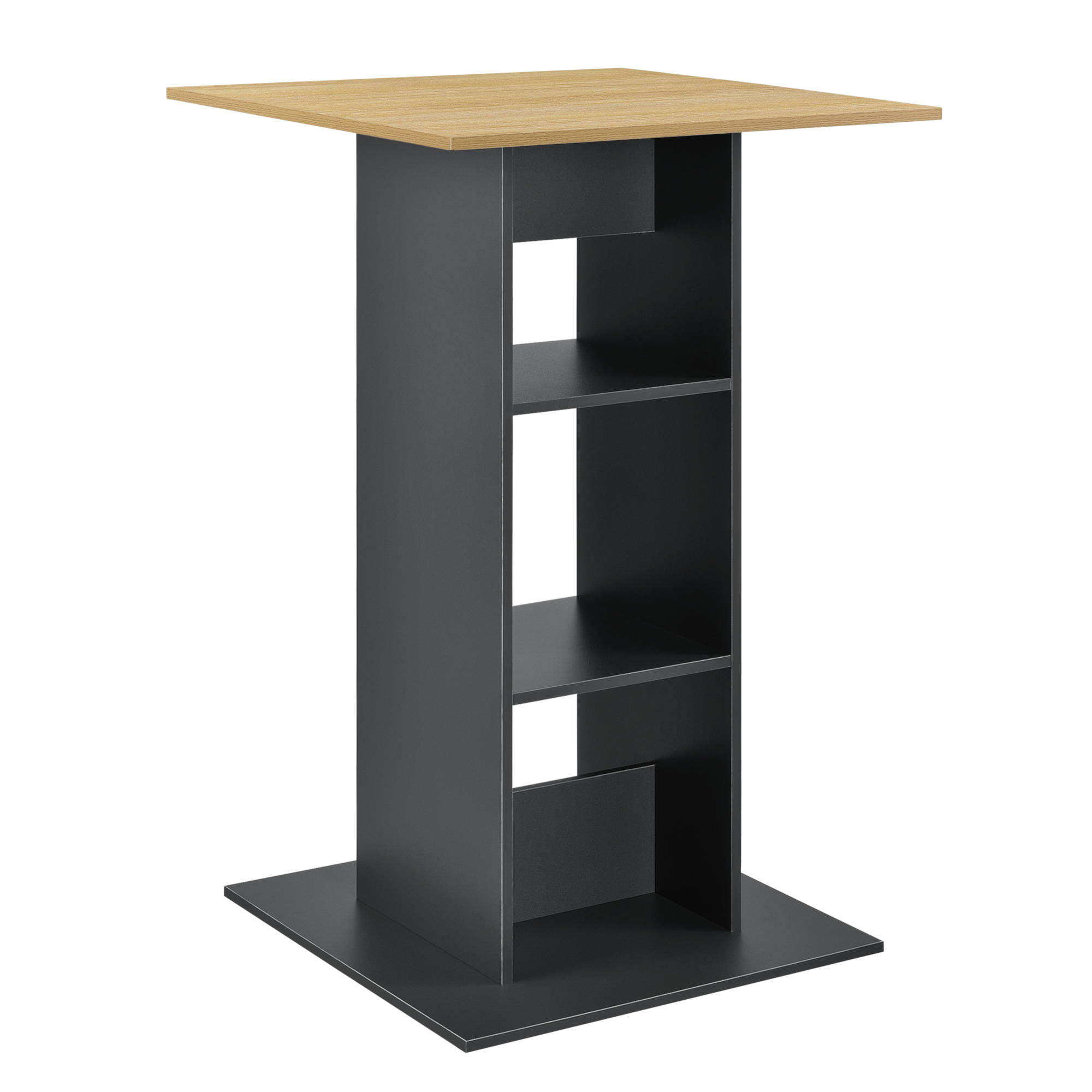 [en.casa] Masa bar Visby CL, 70 x 70 x 110cm, PAL melaminat, gri inchis/culoarea lemnului, cu 3 rafturi HausGarden Leisure