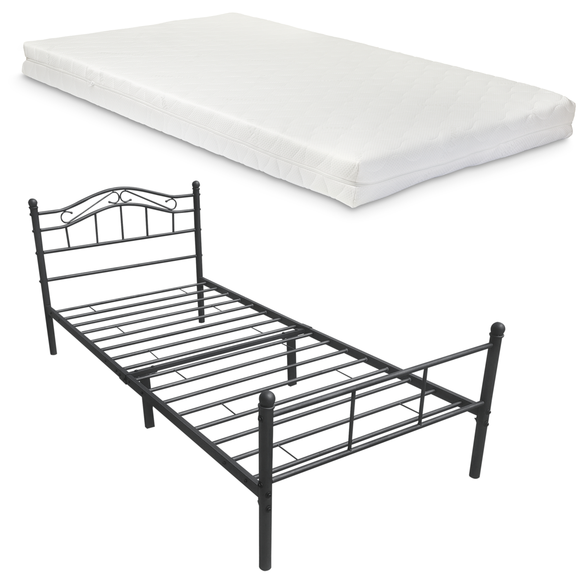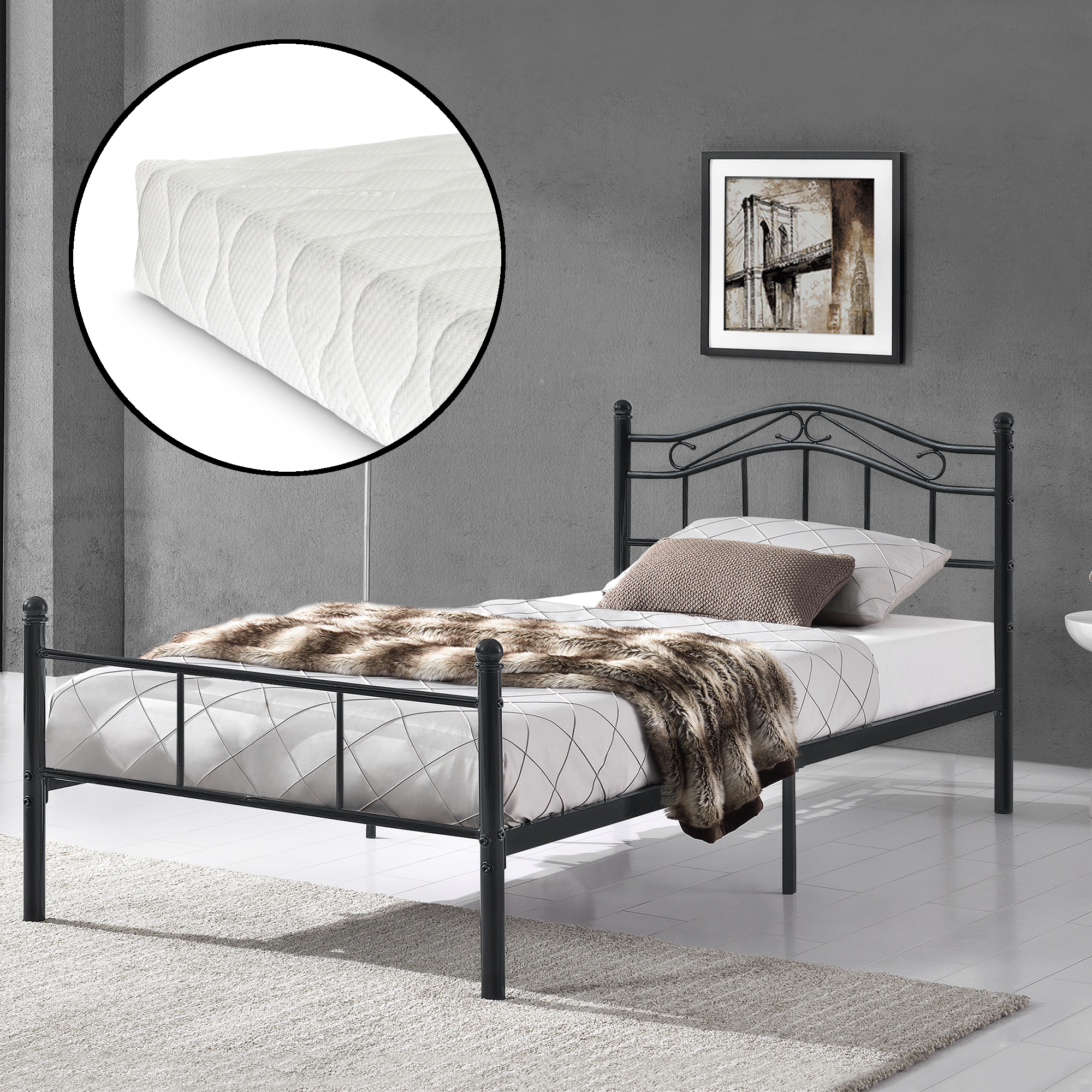 [en.casa]® Pat cadru metalic -vintage Coca,- cu saltea spuma rece - 90 x 200 cm (negru) HausGarden Leisure