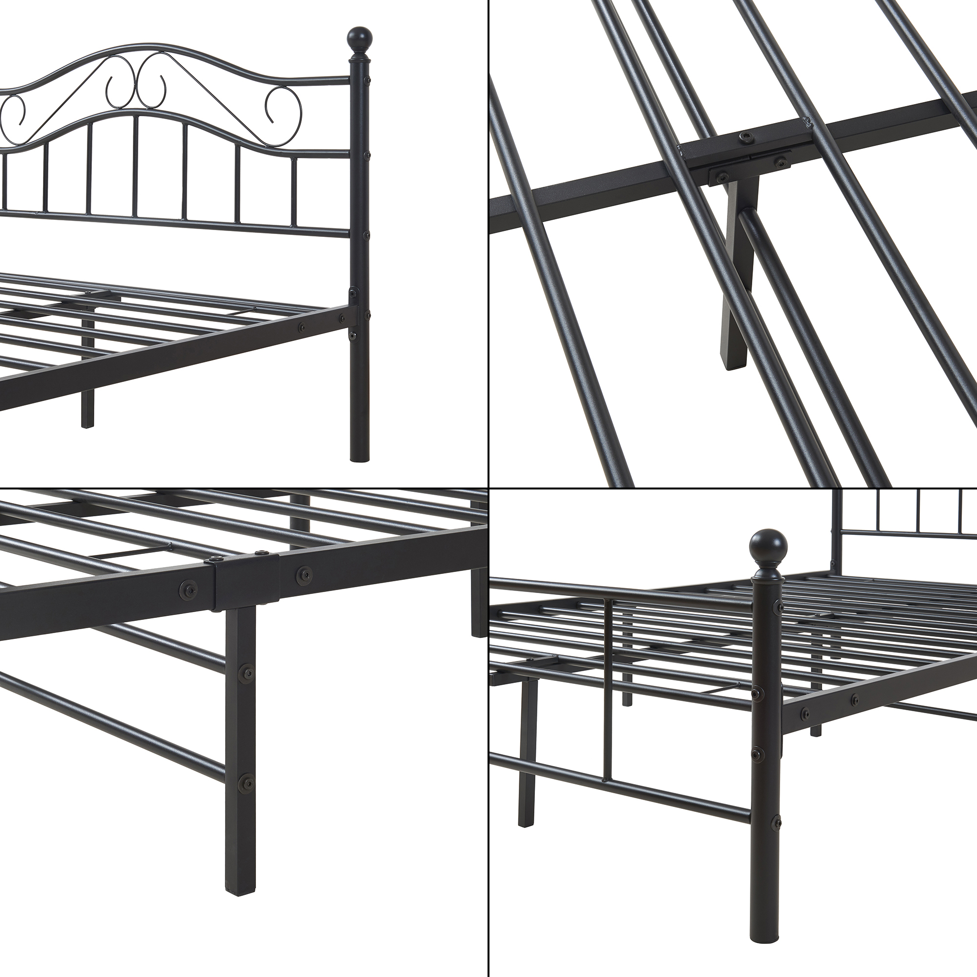 [en.casa]® Pat cadru metalic vintage Dina - cu saltea cu spuma rece - 120 x 200 cm (negru) HausGarden Leisure