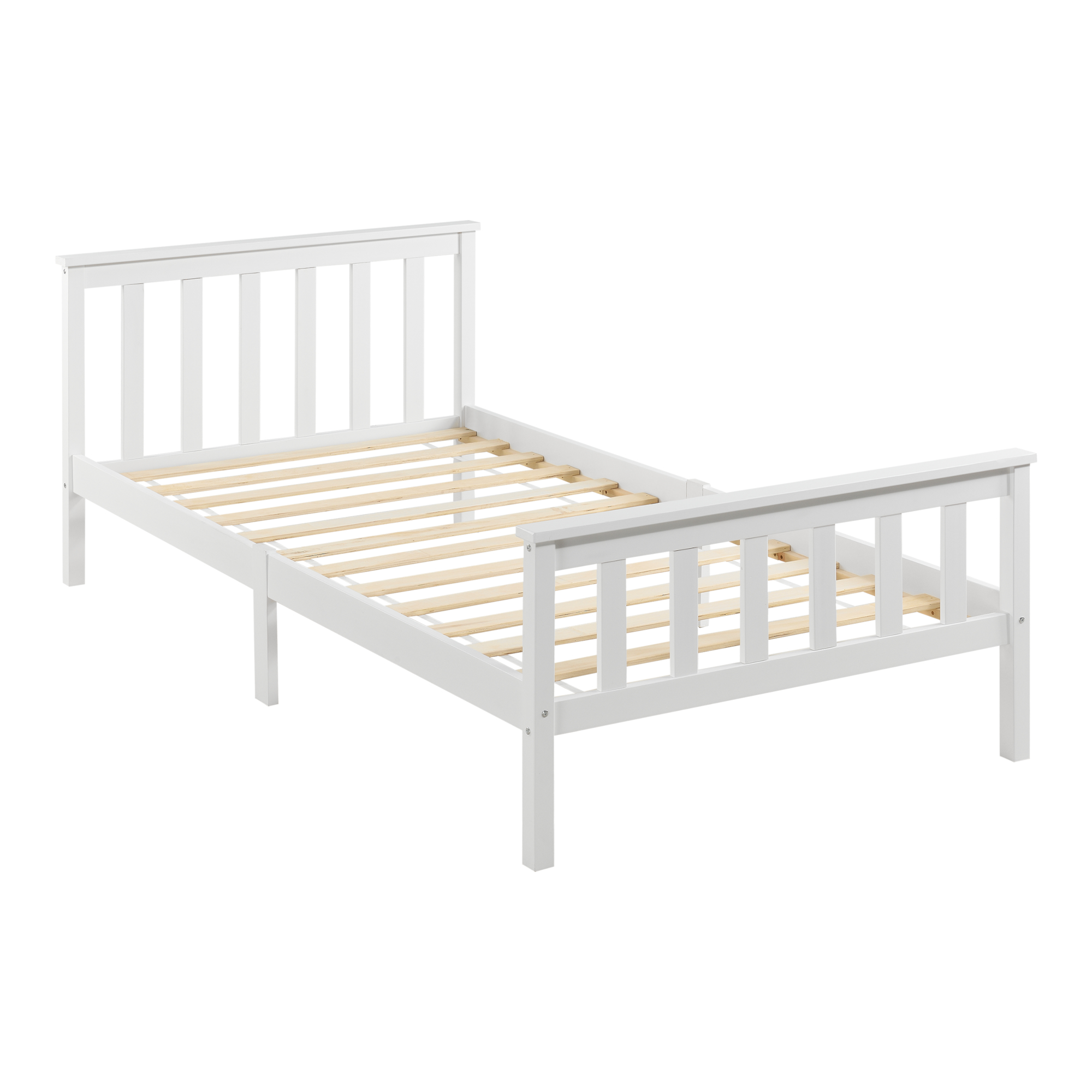 [en.casa]® Pat lemn Breda 100W, 209 x108 x 80 cm, lemn brad/PAL, alb mat lacuit,100 Kg, single, fara saltea HausGarden Leisure