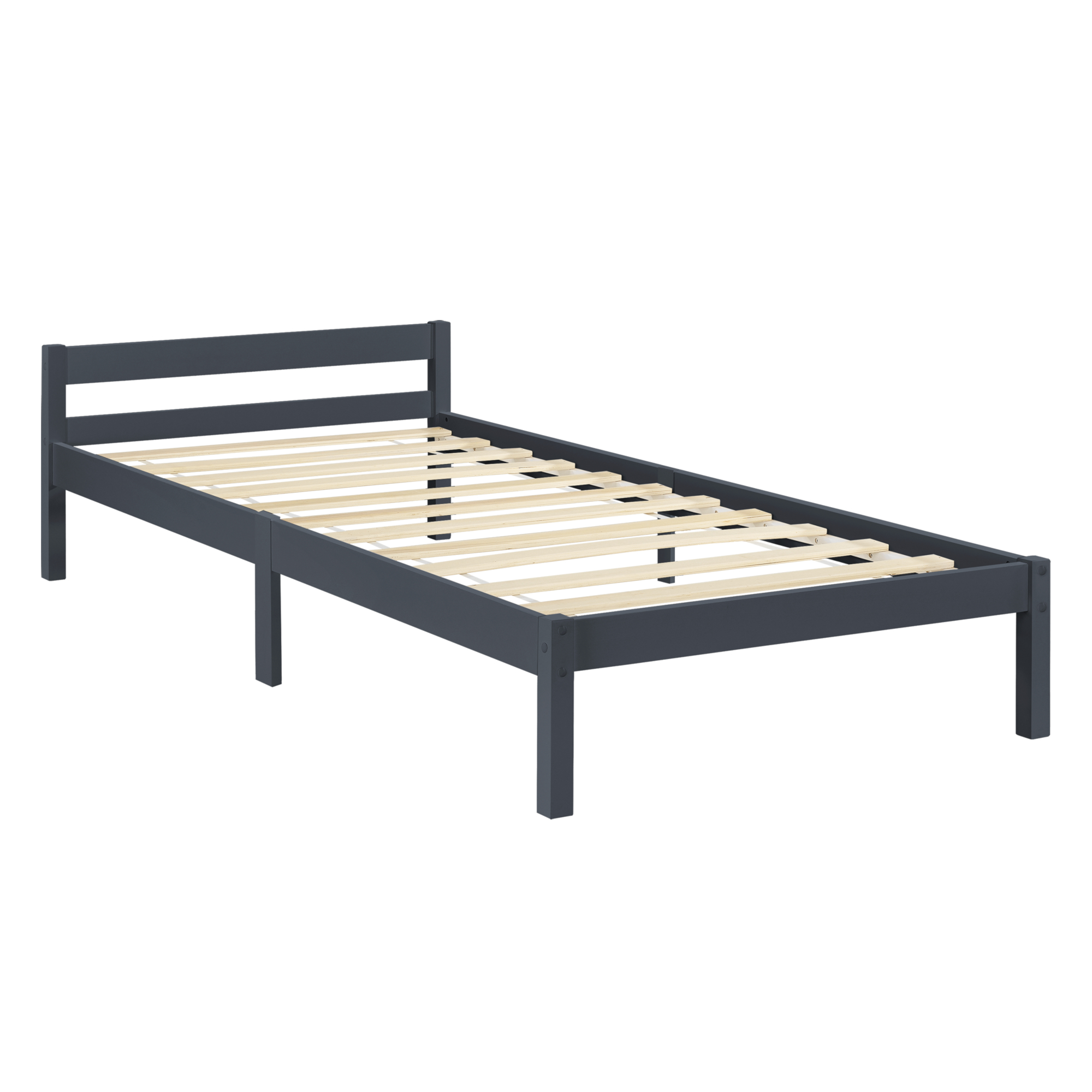 [en.casa]® Rama pat lemn Nakkila DG90, 206 x 96 x 50 cm, lemn de brad, 100 Kg, gri inchis mat lacuit, single, cu gratar HausGarden Leisure