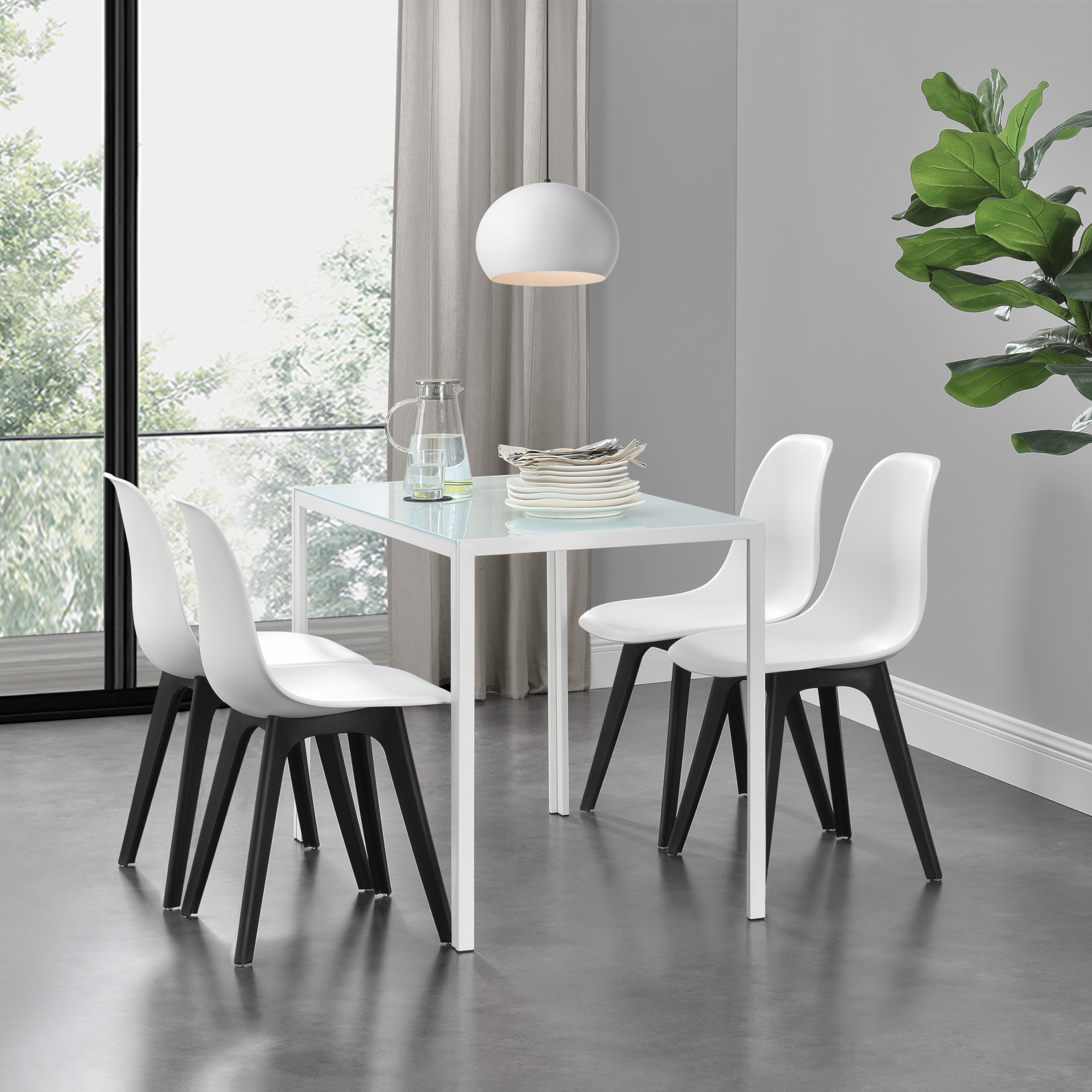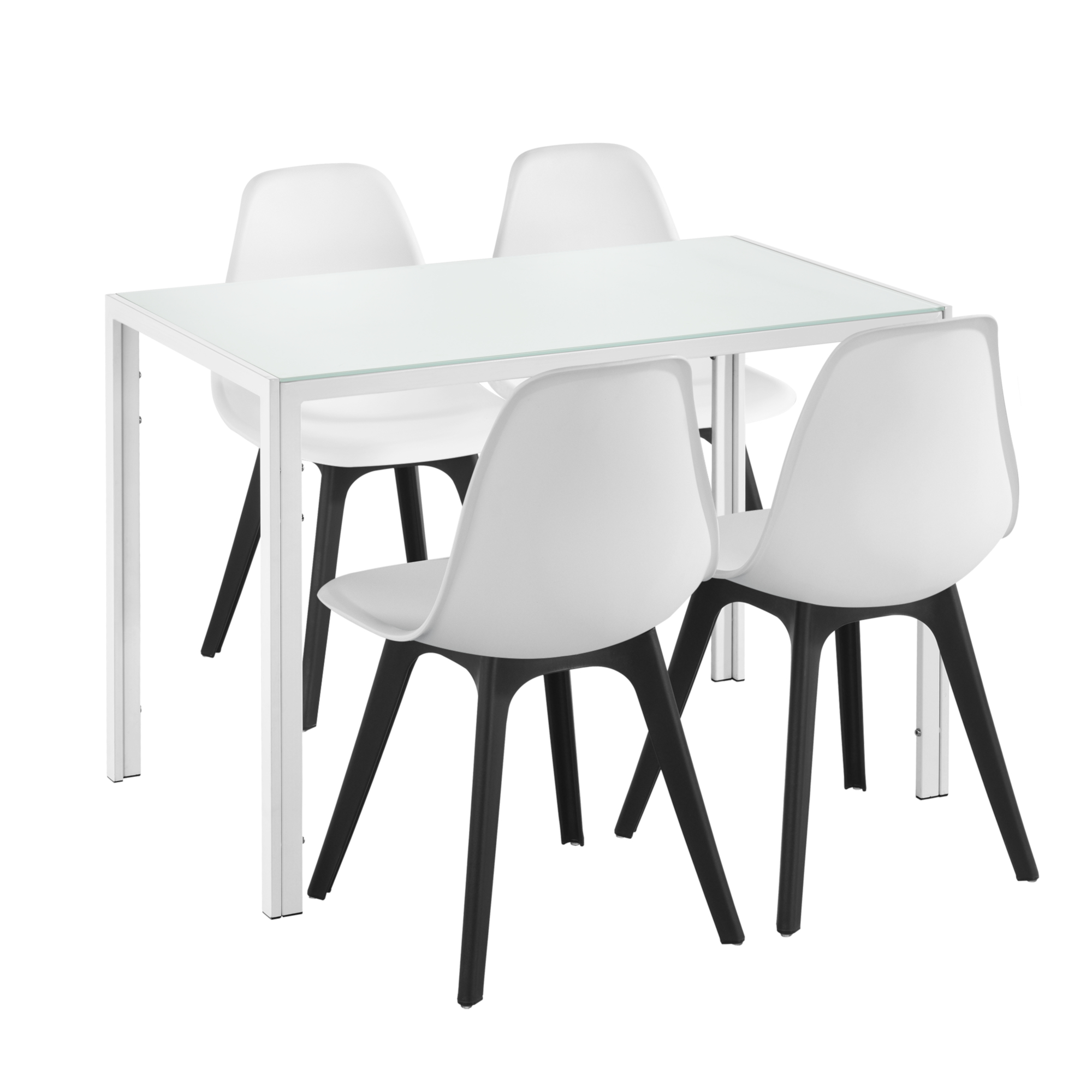 [en.casa] Set Xenia masa cu 4 scaune design, masa 105 x 60 cm, scaun 83 x 54 cm, sticla/metal/plastic, alb/negru HausGarden Leisure