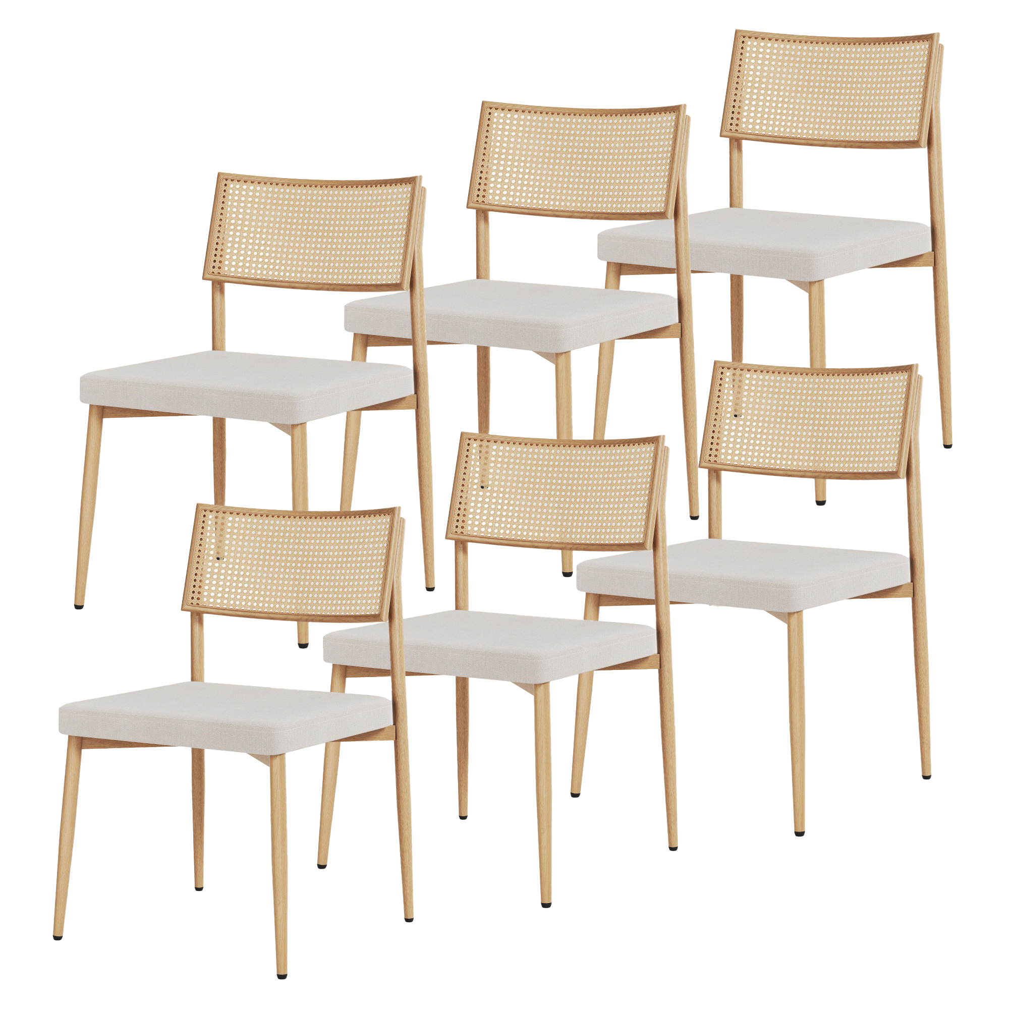 Esszimmerstuhl Jördfjok 6er Set Textil Rattanoptik/Beige [en.casa]