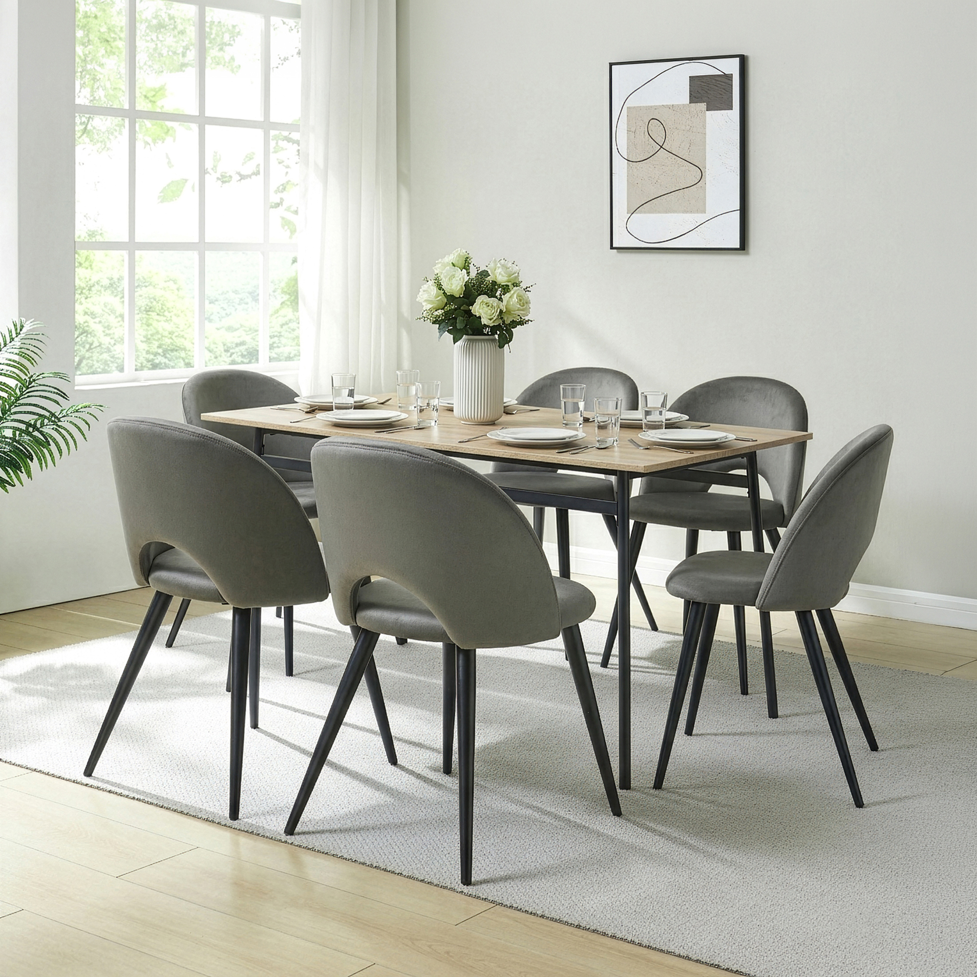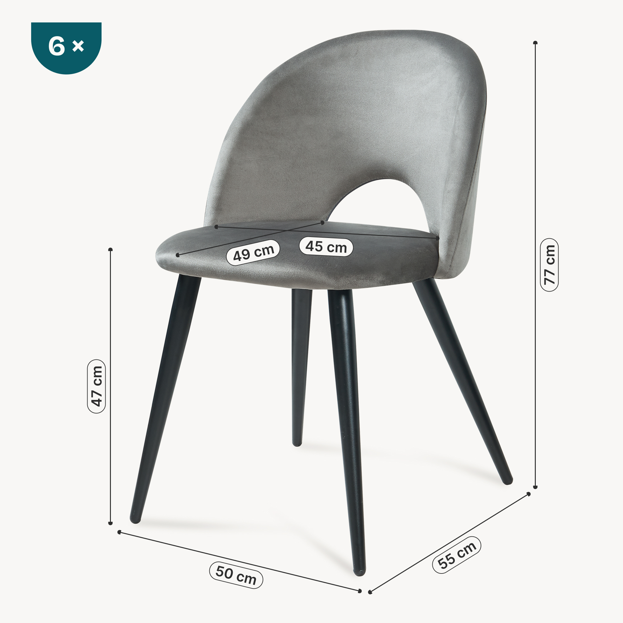 Esszimmerstuhl Karijoki 6er Set Samt Grau/Schwarz [en.casa]