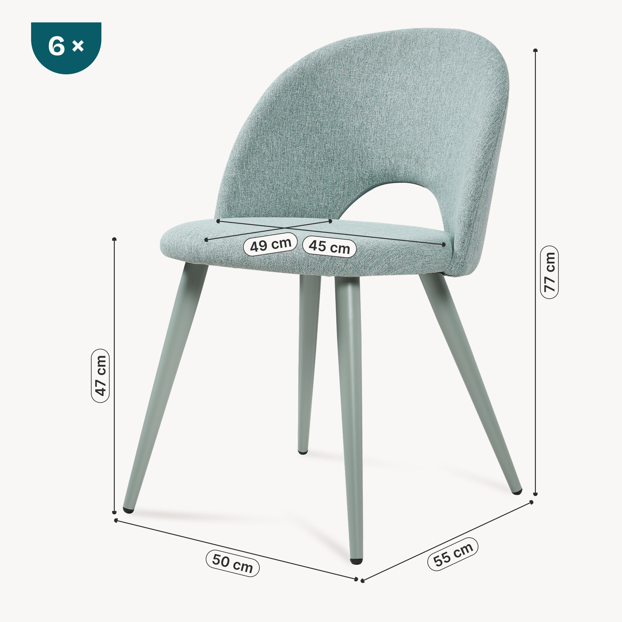 - Sitzfläche (BxT): 45 x 49 cm