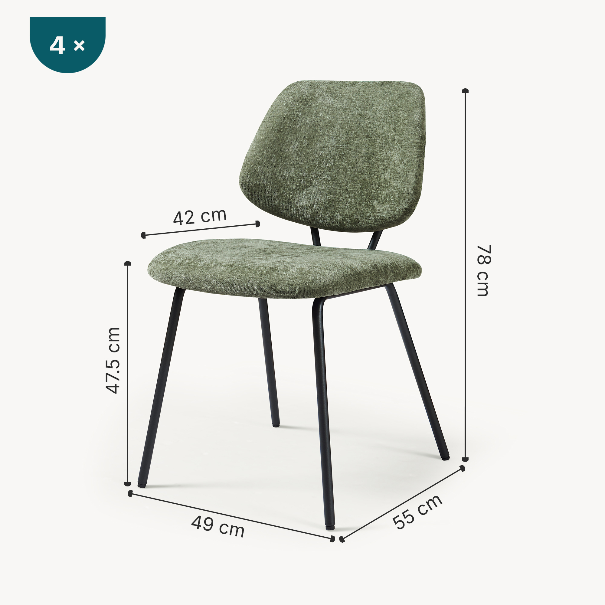 - Sitzfläche (BxT): 49 x 42 cm