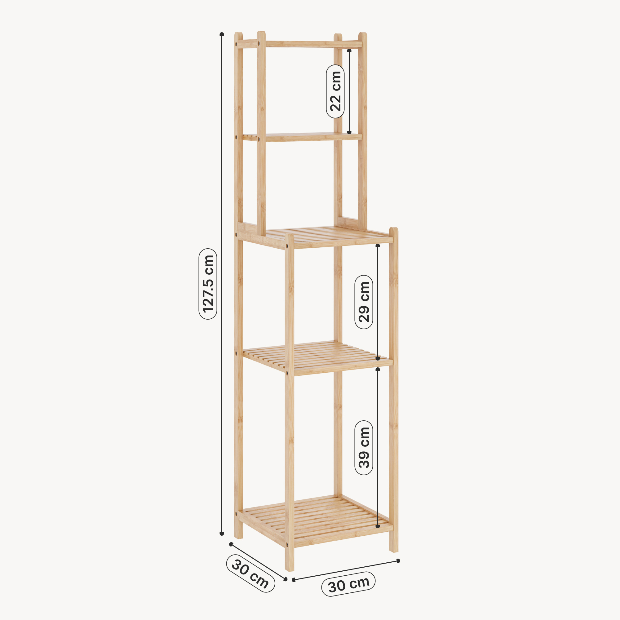 Etajeră de baie Anun din bambus natur, 128x30x30 cm, 4 rafturi