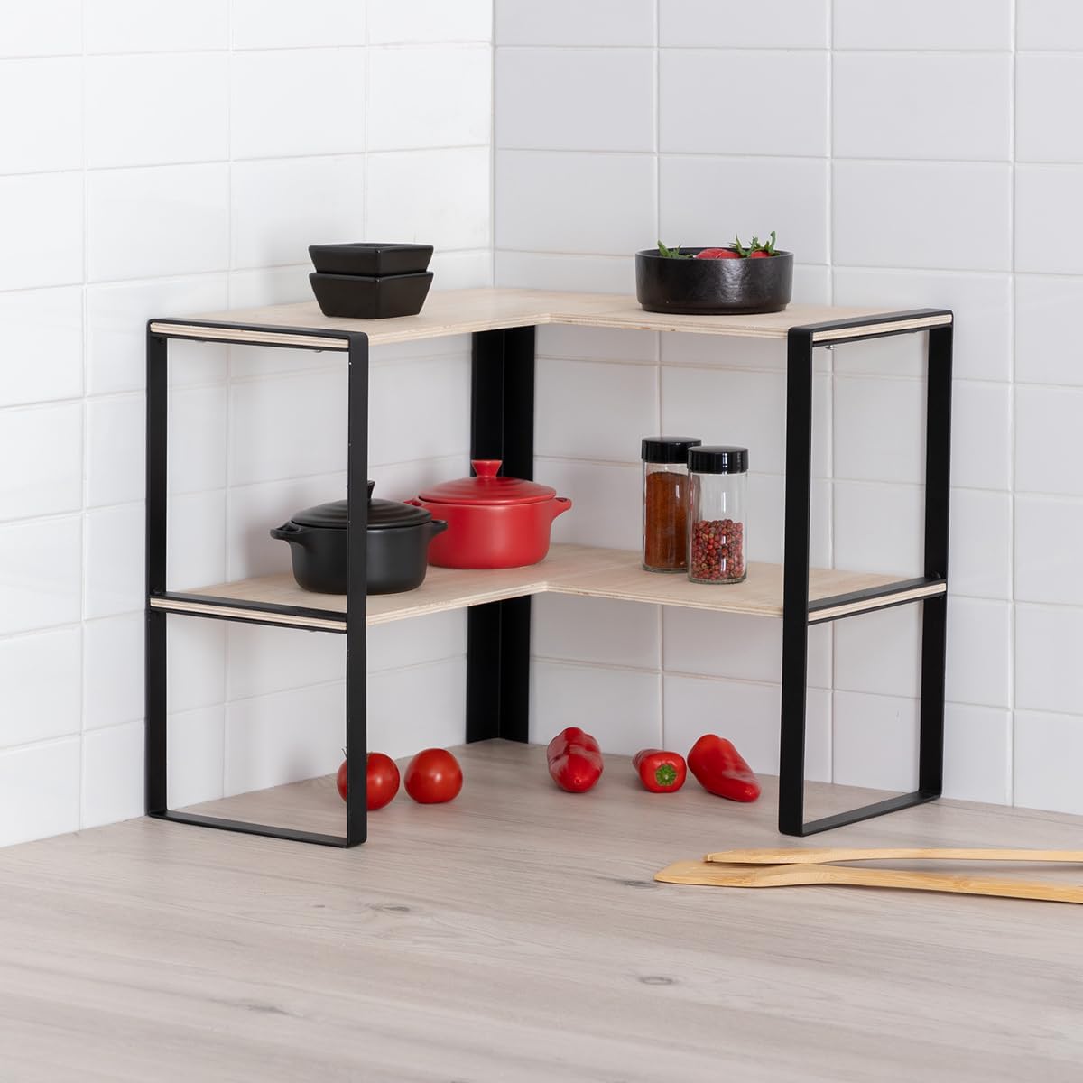 Optimizează spațiul din casă cu această etajeră de colț Blackwood cu 2 niveluri, o soluție practică și elegantă pentru organizarea obiectelor de zi cu zi. Datorită formatului compact și designului special pentru colțuri, se integrează ușor în baie, bucătărie, birou sau alte încăperi unde ai nevoie de depozitare suplimentară fără să încarci vizual spațiul.