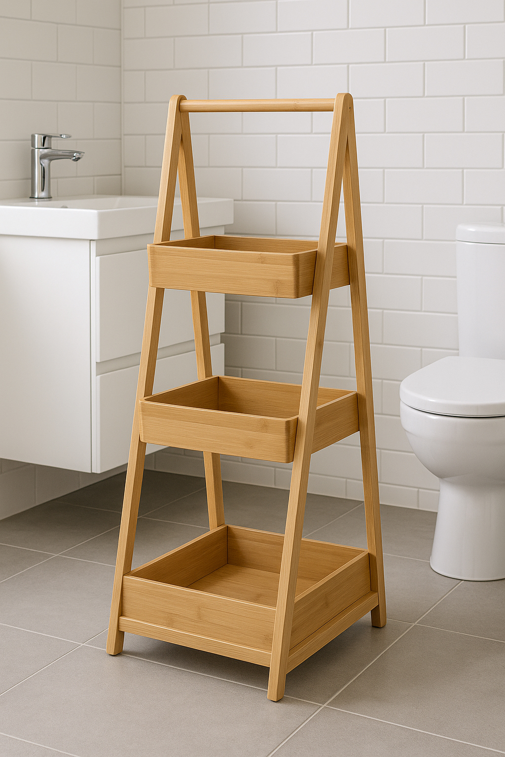 - 3 niveluri de depozitare pentru produse de baie, accesorii, cosmetice, condimente sau decoratiuni