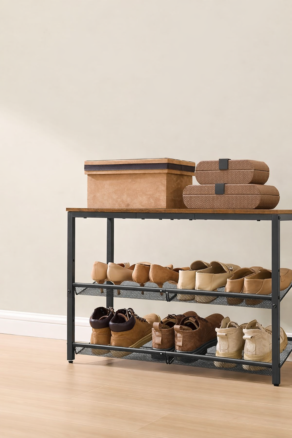 Etajera pentru pantofi VASAGLE cu 3 niveluri si blat, stil industrial