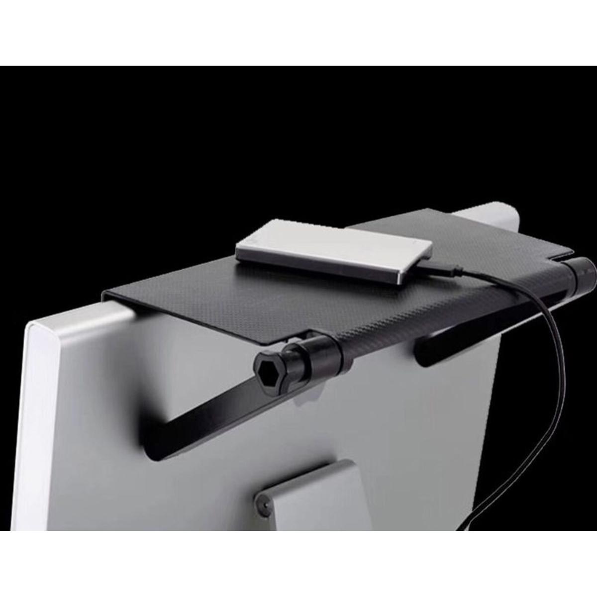 Un raft convenabil, compact, conceput pentru a fi montat pe partea superioară a cadrului televizorului sau a monitorului LCD. Vă permite să economisiți spațiu pe birou și masă într-un mod inteligent. Instalarea foarte simplă și neinvazivă previne deteriorarea echipamentului. Mânerul reglabil vă permite să schimbați unghiul raftului și să îl reglați în spatele ecranului. Un gadget perfect care vă permite să stocați în mod convenabil telecomanda televizorului sau alte obiecte mici.