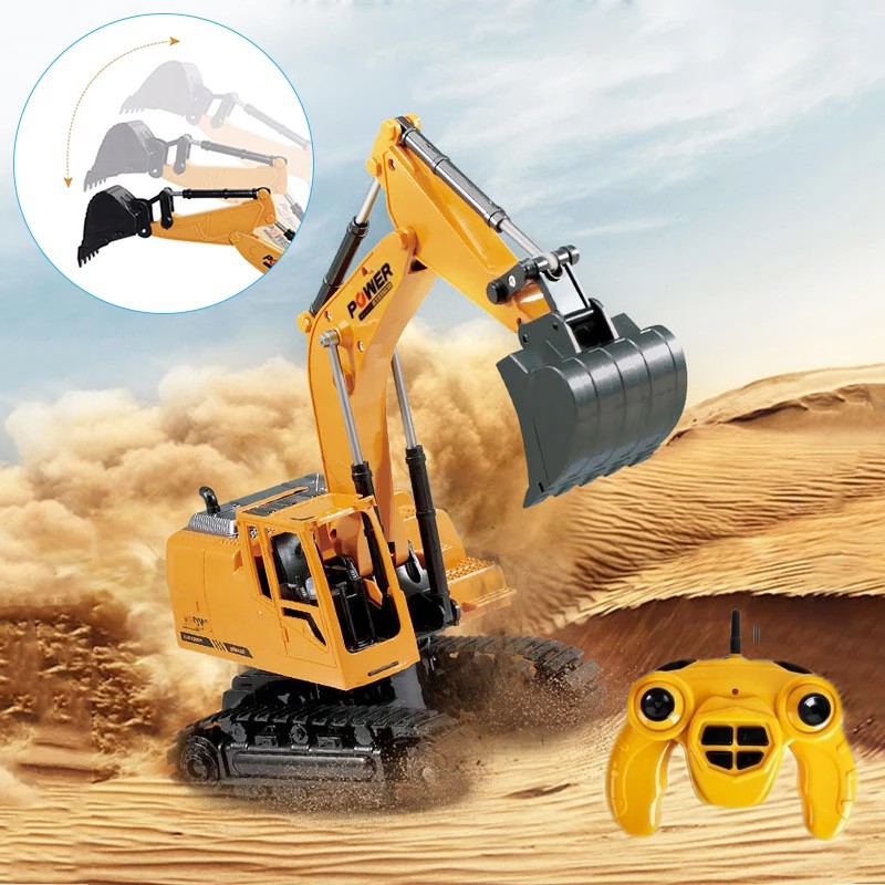 Excavatorul de jucarie poate fi un cadou ideal pentru orice baietel, este prevazut cu o telecomanda 2.4GHz cu 7 canale care va permite sa controlati miscarile acestuia de la distanta.