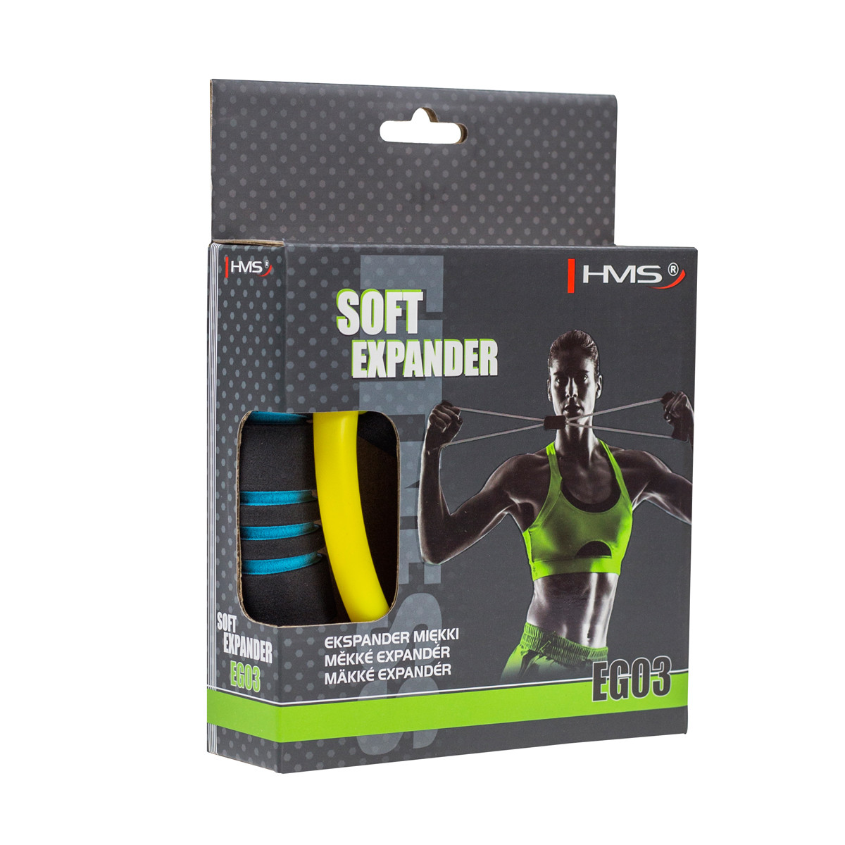 Expanderul de cauciuc HMS EG03 este un dispozitiv pentru antrenarea muschilor superiori. Acesta este compus dintr-o coarda de cauciuc si doua manere din spuma. Expanderul de cauciuc HMS EG03 este o modalitate eficienta de a intari a muschilor bratelor, pieptului, abdomenului, spatelui si pelvisului. Expanderul poate fi folosit si pentru exercitii generale de dezvoltare si reabilitare. Dimensiunile reduse, combinate cu versatilitatea sa, il fac un dispozitiv ideal pentru uz casnic. Un spatiu mic este suficient pentru al utiliza pentru a efectua orice set de exercitii.