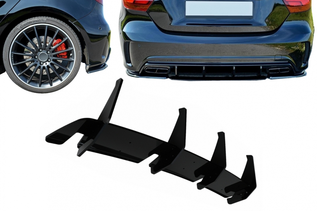 Extensie difuzor bara spate Mercedes A-Class W176 A45 Hatchback, negru lucios