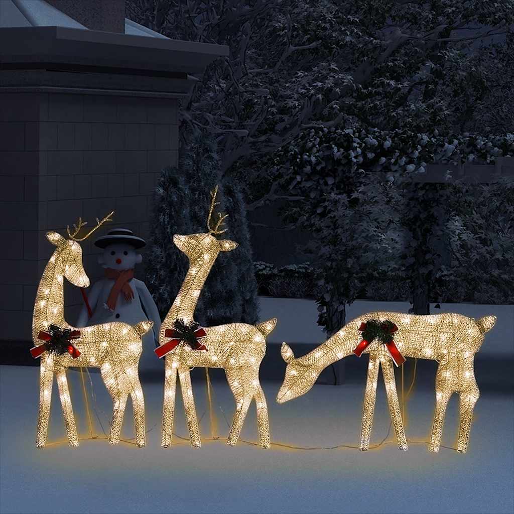 Fabricată din material textil rezistent și oțel, această familie de reni iluminați este foarte durabilă. Această strălucitoare familie de reni are 90 de LED-uri, eficiente din punct de vedere energetic și durabile. Datorită designului cu plasă, produce un efect magnific în timpul iluminării. Cu 8 efecte de iluminare diferite: o combinație a tuturor efectelor, strălucire lentă, sclipire / bliț, în valuri, urmărire / apă curgătoare, secvențială, constantă și cu decolorare lentă, luminează frumos și creează o atmosferă magică de sărbătoare.