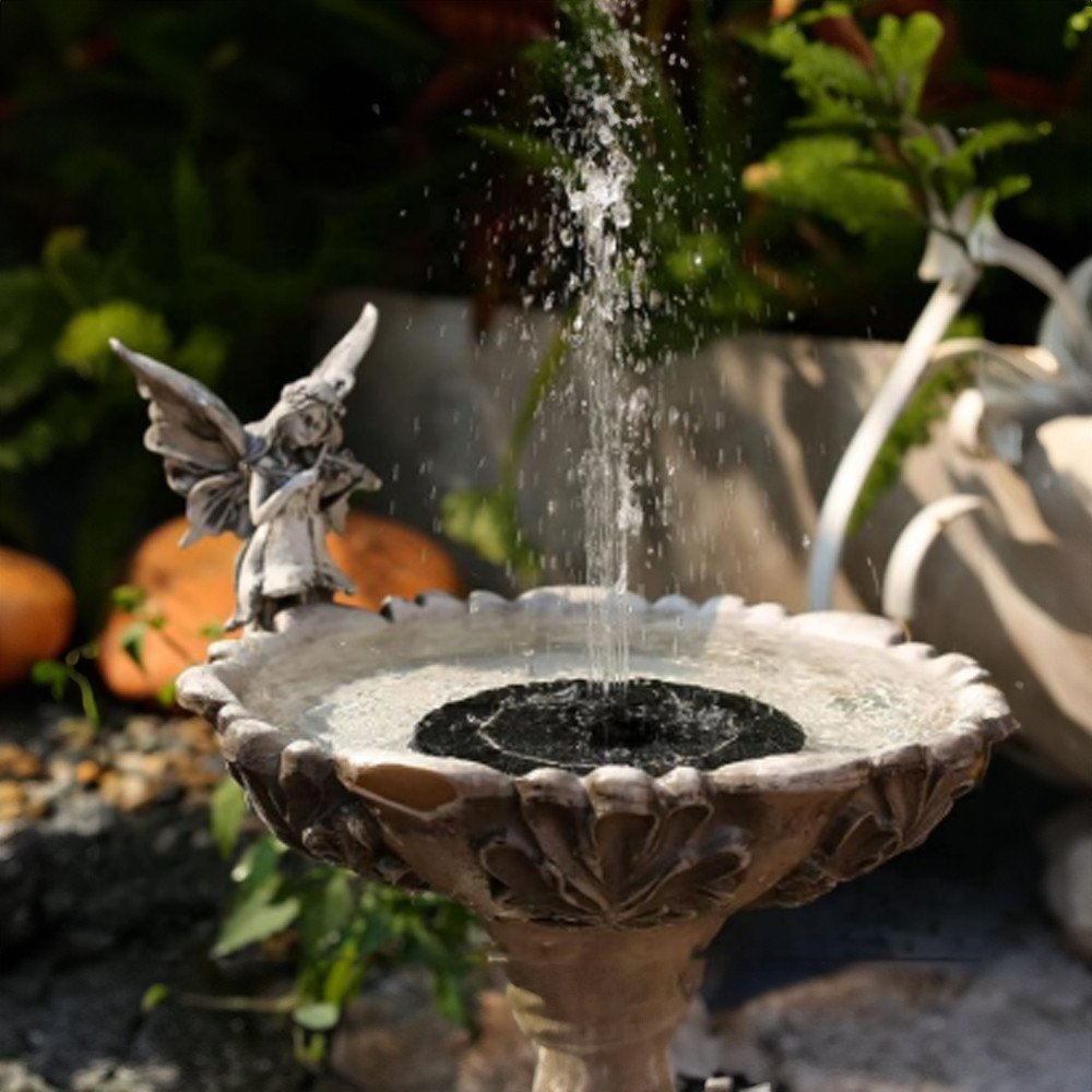 Cum se folosește: așază fântâna în apă și poziționeaz-o în lumină directă pentru ca panoul solar să alimenteze pompa. În funcție de intensitatea soarelui, jetul poate ajunge până la aproximativ 50 cm. Pentru funcționare optimă, menține panoul curat și evită umbrirea.