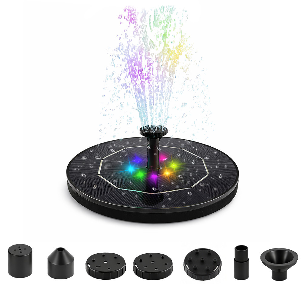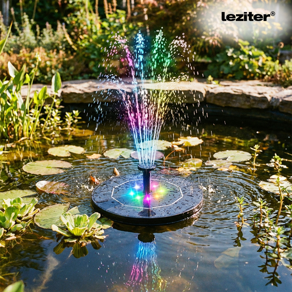 Fântână solară Leziter pentru iaz, cu LED 7 culori și duze multiple, 16 cm