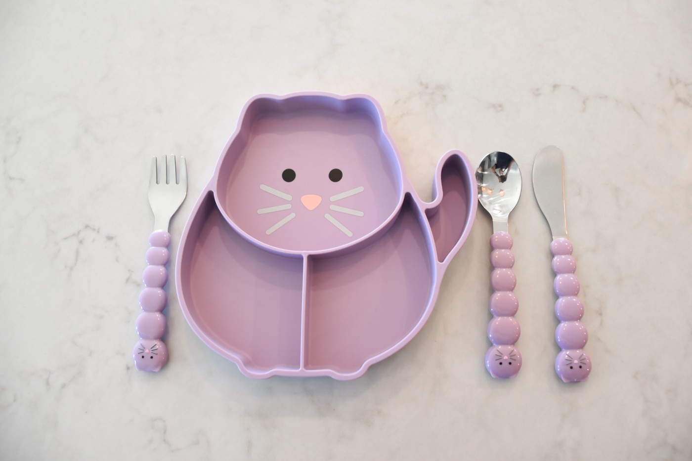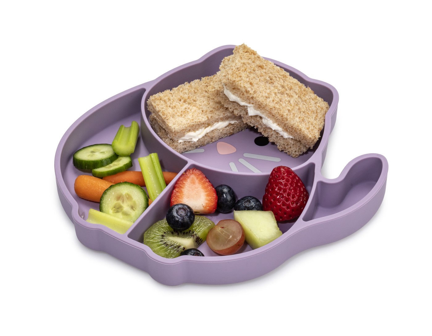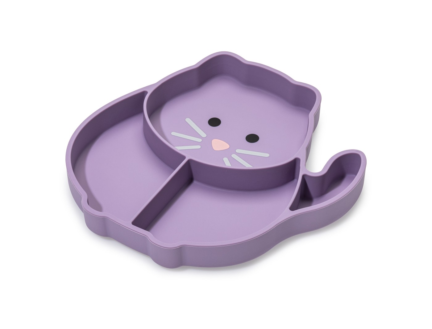 Farfurie compartimentata din silicon cu ventuza Melii, model pisica