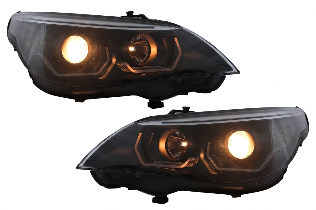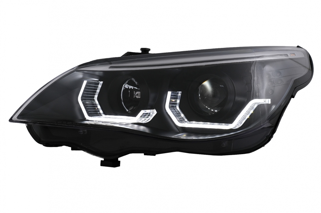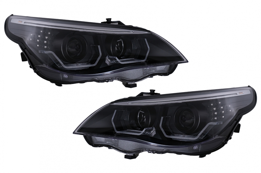Faruri 3D LED Angel Eyes compatibil cu BMW Seria 5 E60 E61 (2003-2007) LCI Design Negru