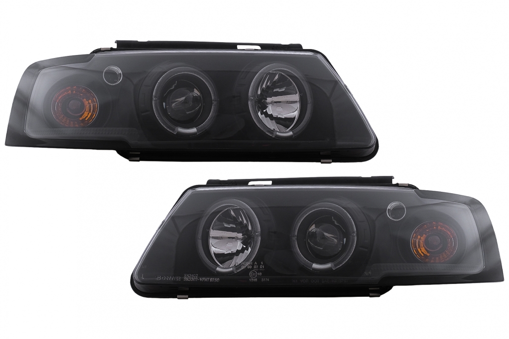 Faruri Angel Eyes VW Passat B5 3B (11.1996-08.2000) Negru Performance AutoTuning