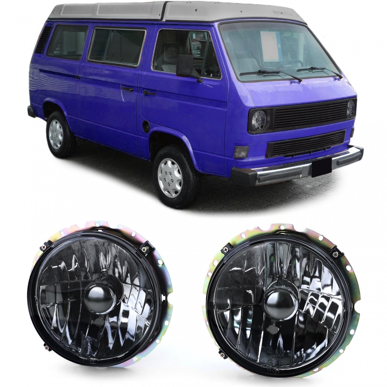 Faruri cu sticlă clară, fum negru, H4, pereche, potrivite pentru VW T3 79-92 Performance AutoTuning