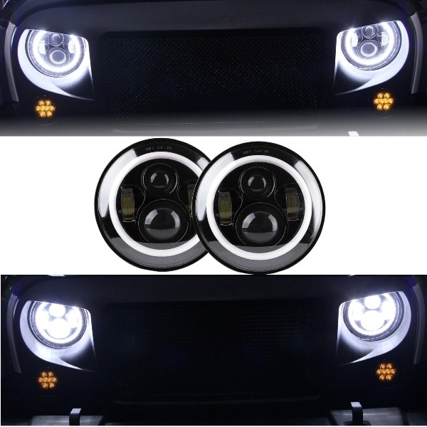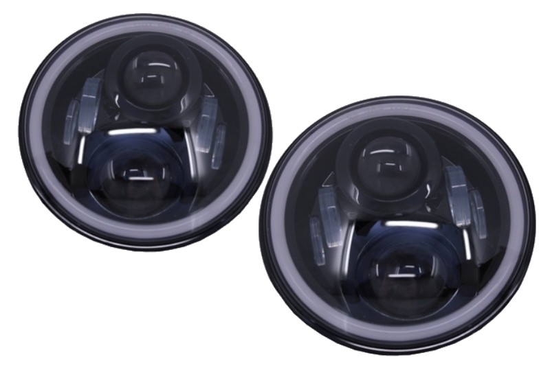 Faruri Full LED CREE Dublu Proiector compatibil cu Jeep Wrangler JK TJ LJ Land Rover Defender Mercedes W463 Negru