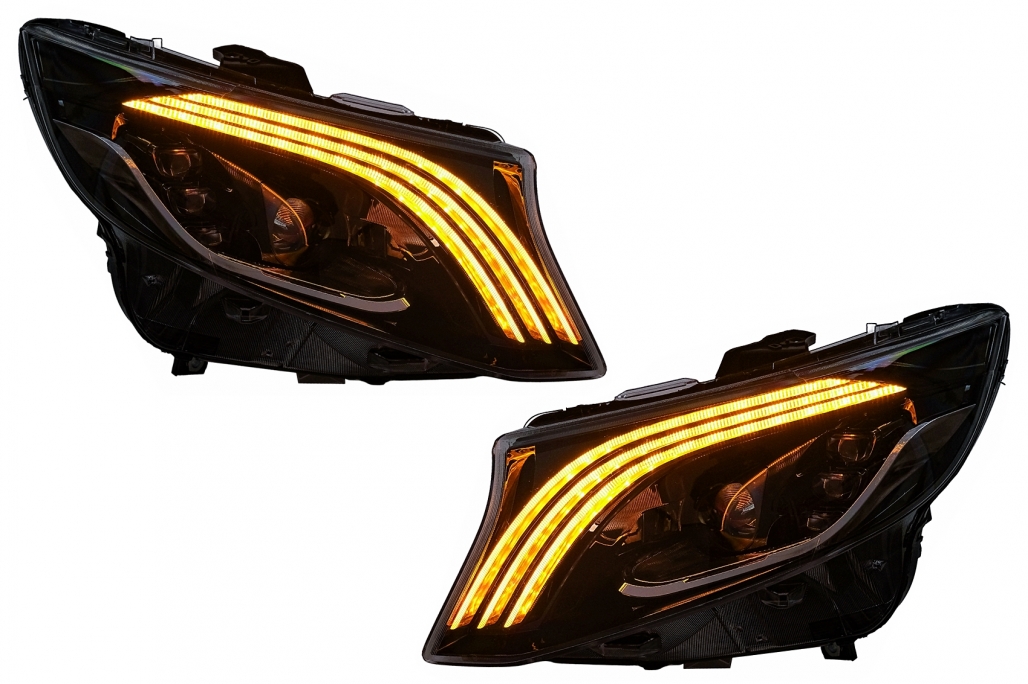 Faruri Full LED compatibil cu Mercedes V-Class Vito W447 (2014-2024) Negru Semnal Dinamic