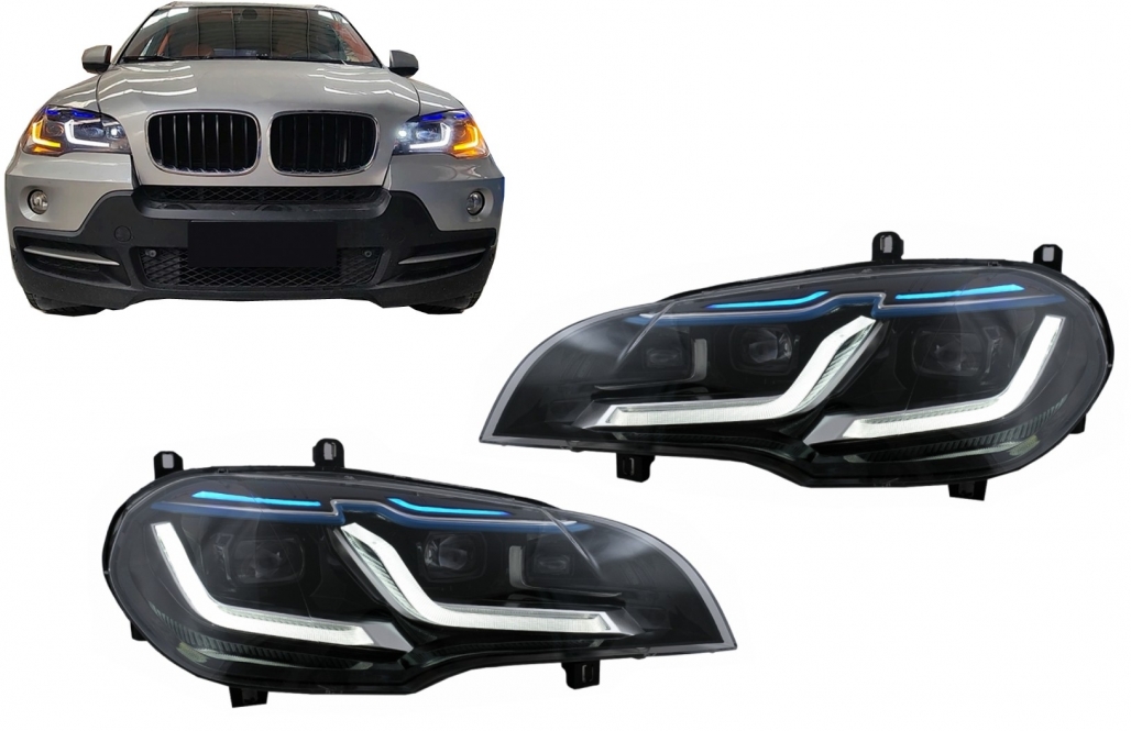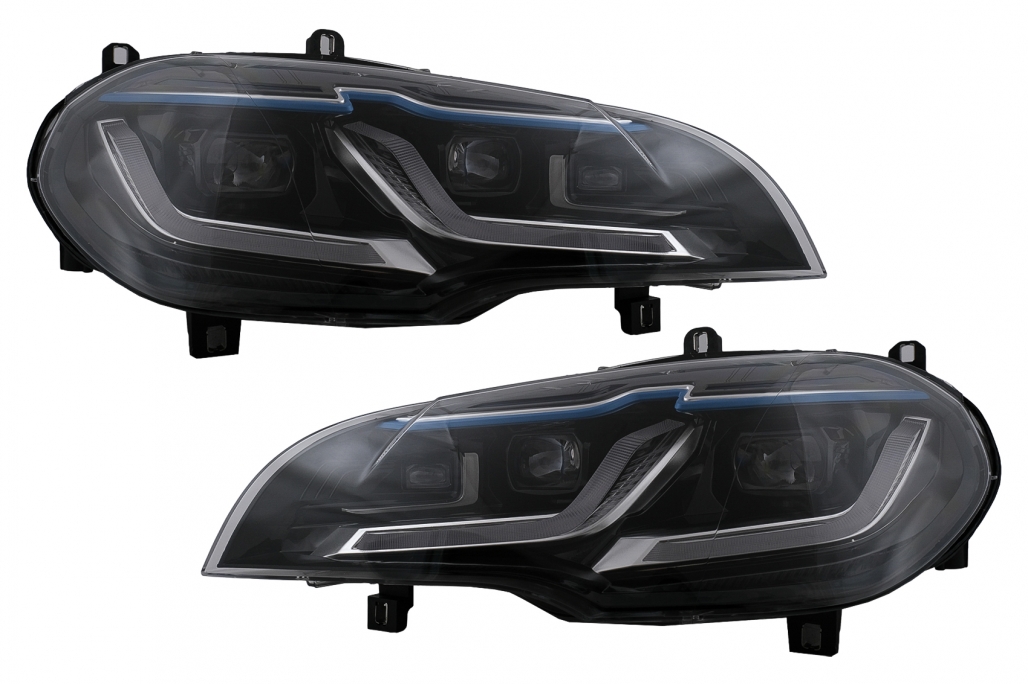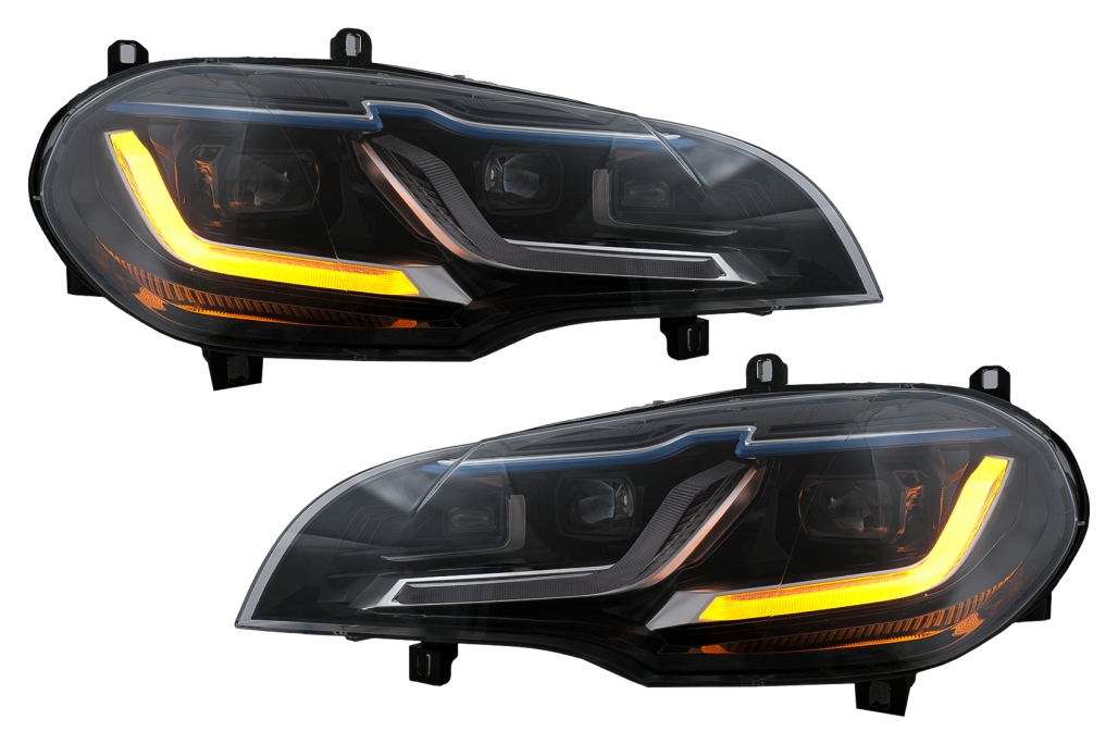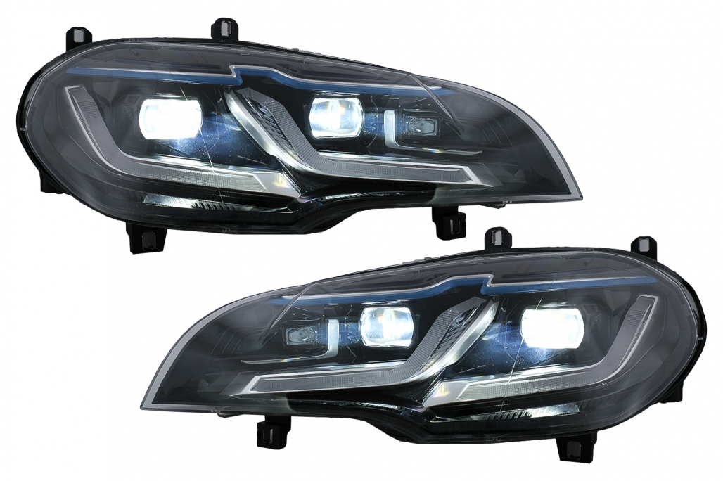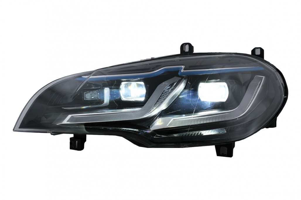 Acest set de faruri BMW X5 E70 imbina designul premium cu tehnologia LED pentru pozitie, semnalizare si faza scurta/lunga, oferind un aspect actualizat si o prezenta mai puternica in trafic.
