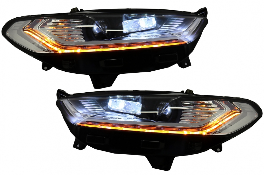 Faruri LED DRL pentru Ford Mondeo MK5 2013-2016 cu semnalizare secvențială crom