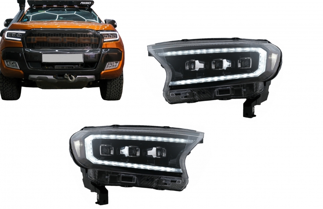 Faruri LED Light Bar Dynamic Start-up Display compatibil cu Ford Ranger (2015-2020) LHD Negru cu Semnal Dinamic Matrix Projector