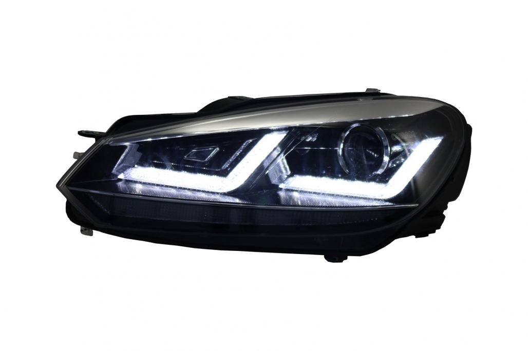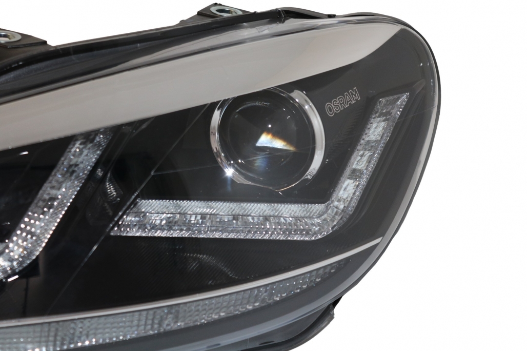 Farurile sunt concepute pentru VW Golf VI 2008-2012 si vin echipate cu surse OSRAM XENARC ORIGINAL D8S incluse pentru faza scurta si faza lunga. Integreaza lumina de zi LED si lumina de pozitie LED, contribuind la o prezenta vizuala moderna si la o vizibilitate imbunatatita in trafic.