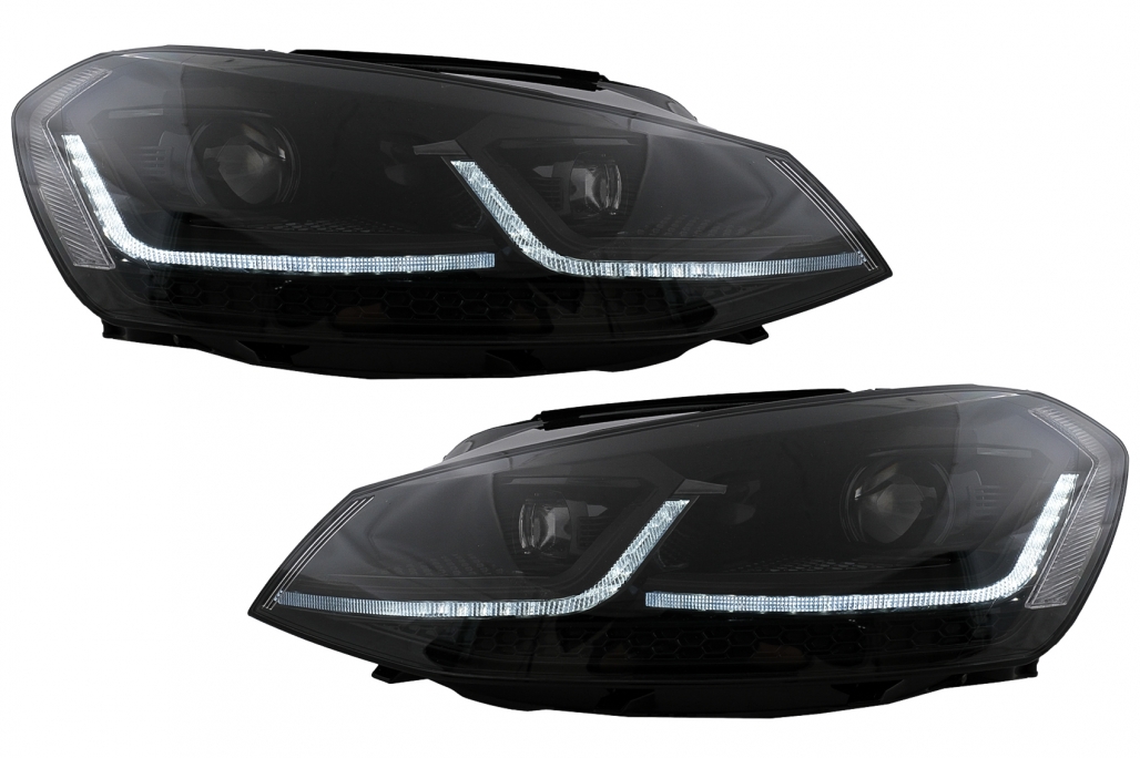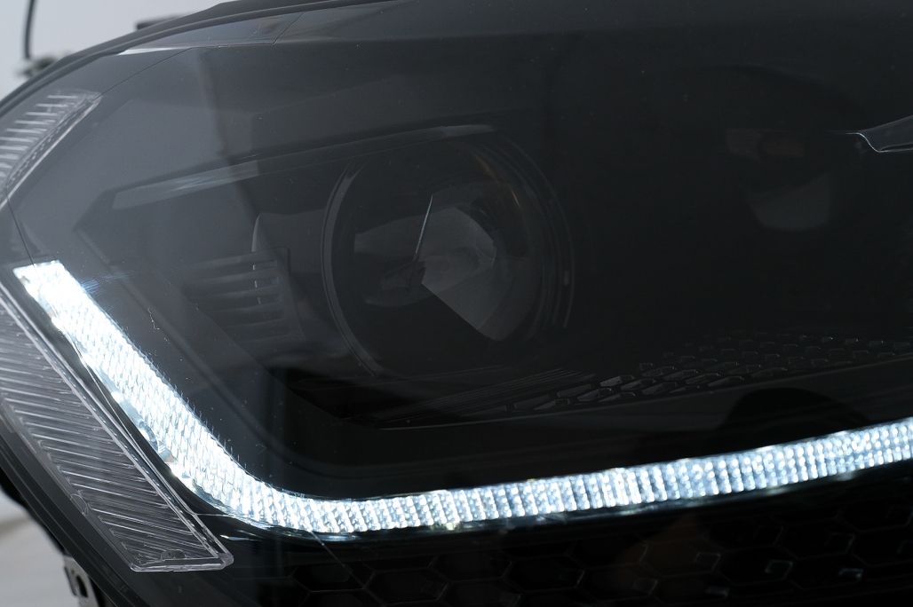 Faruri LED echipate cu lumina de zi Design: GOLF 7.5 Design Montaj Plug and Play Faza Scurta: Bec H7 Halogen (nu este inclus) Faza Lunga: LED Semnalizare: LED Dinamica Lumina de zi: LED Echipate cu motor pentru reglare Pentru anumite modele de echipare, este nevoie de codare VCDS. Putem furniza schema de codare, dupa vanzare.