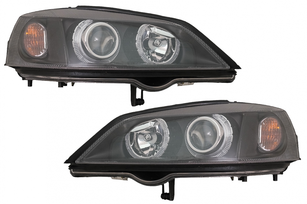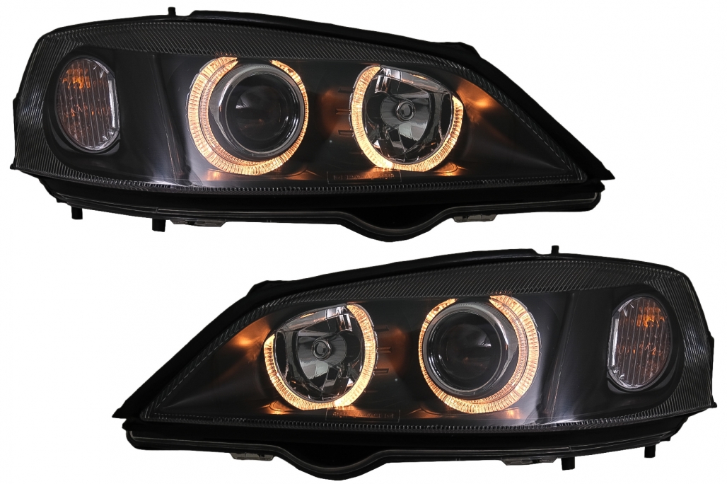 Faruri Opel Vauxhall Astra G (09.1997-02.2004) Angel Eyes Negru Performance AutoTuning