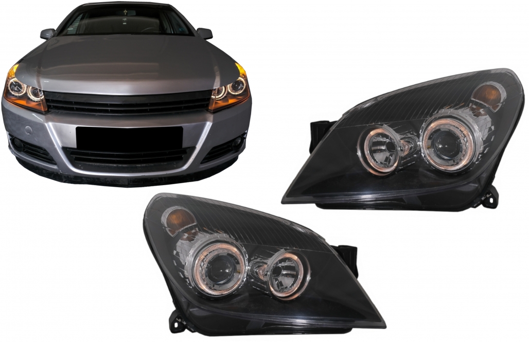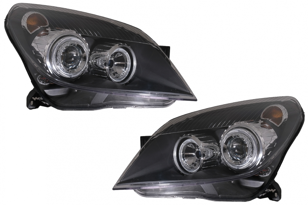 Faruri Opel Astra H 2004-2009 Angel Eyes negre cu reglaj electric