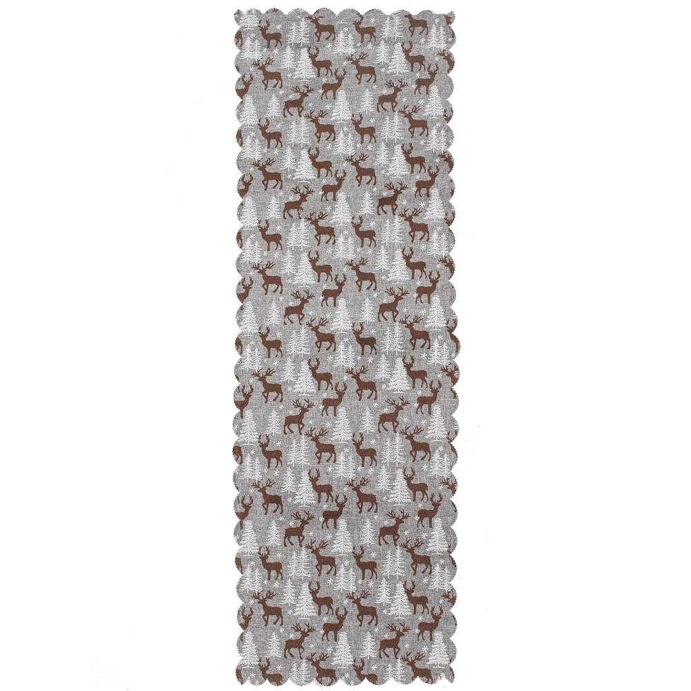 Fata de masa decorativa de Craciun din stofa, gri, 35x186 cm