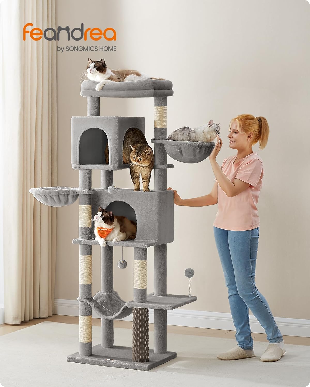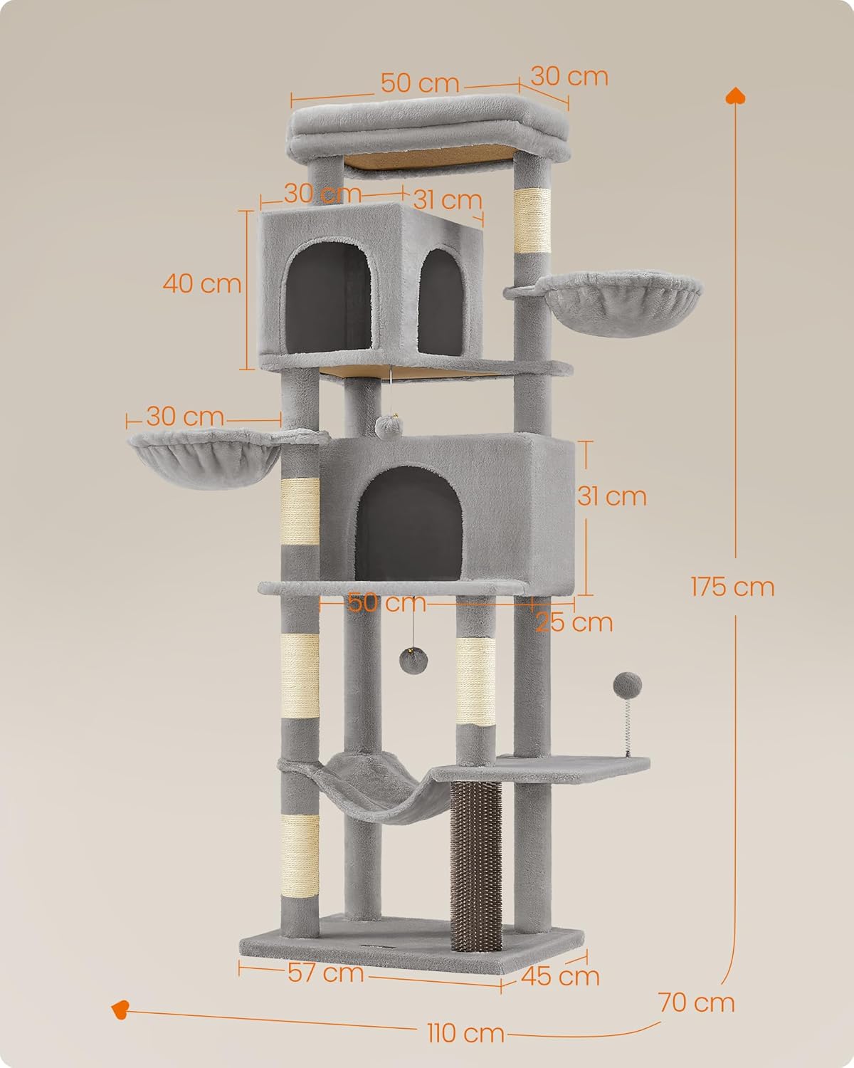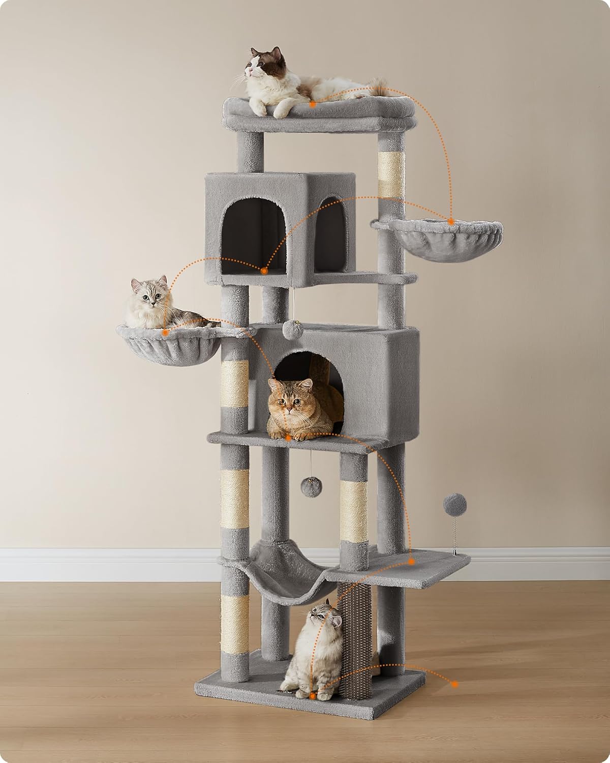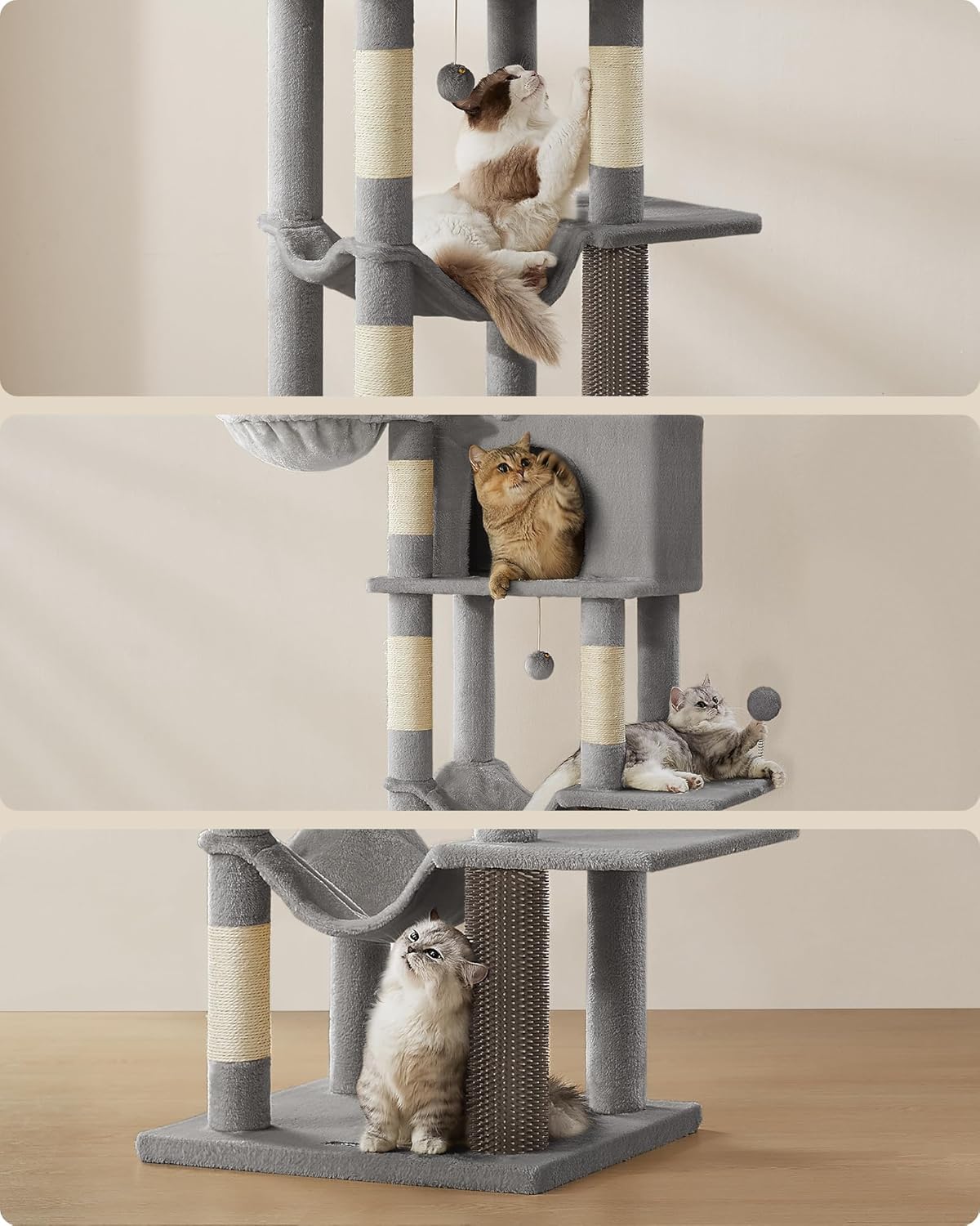 FEANDREA Ansamblu de joaca pentru pisici, platforme, ascunzatori, hamac si stalpi din sisal, 57x45x175 cm, gri deschis Household NewTrend
