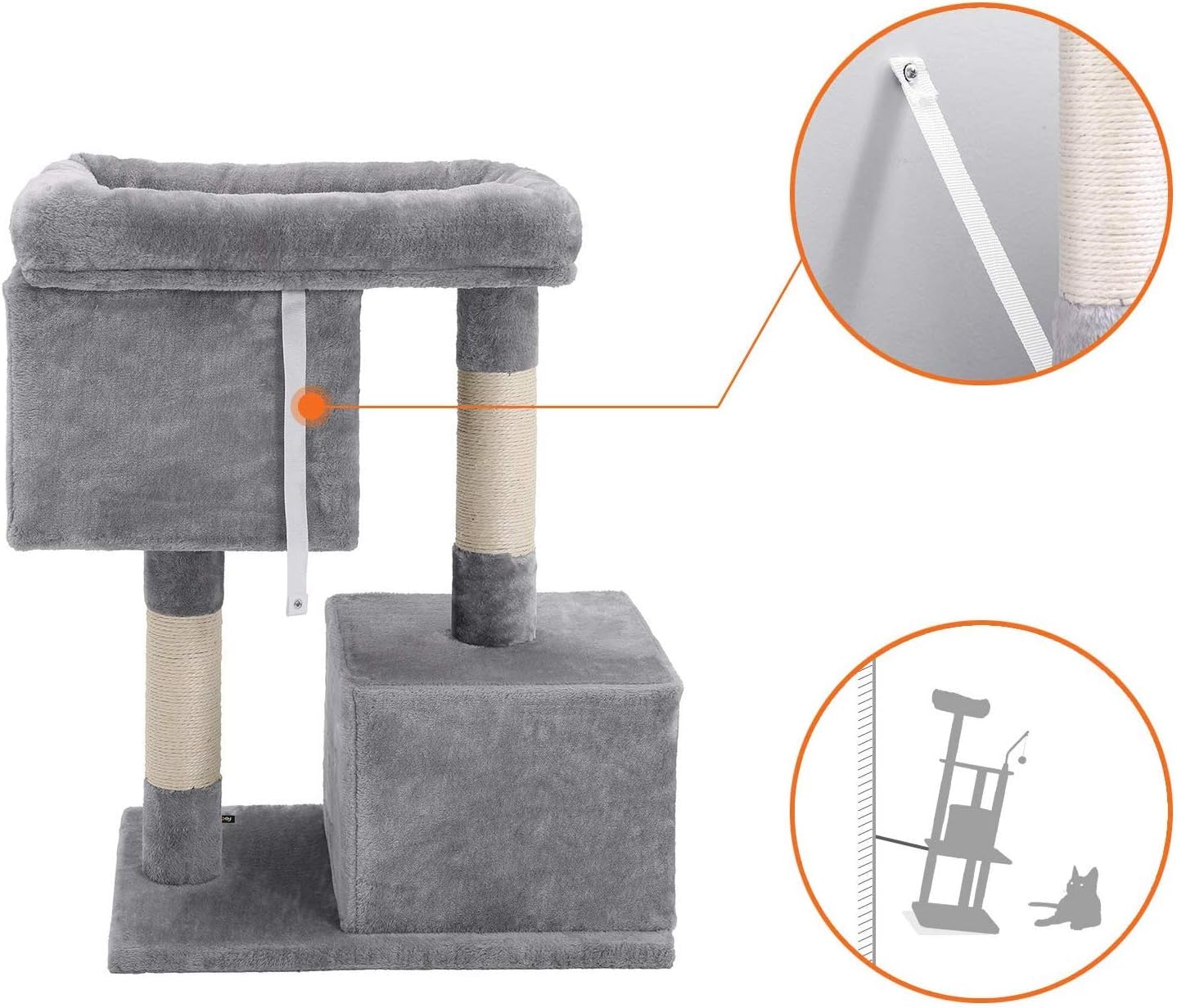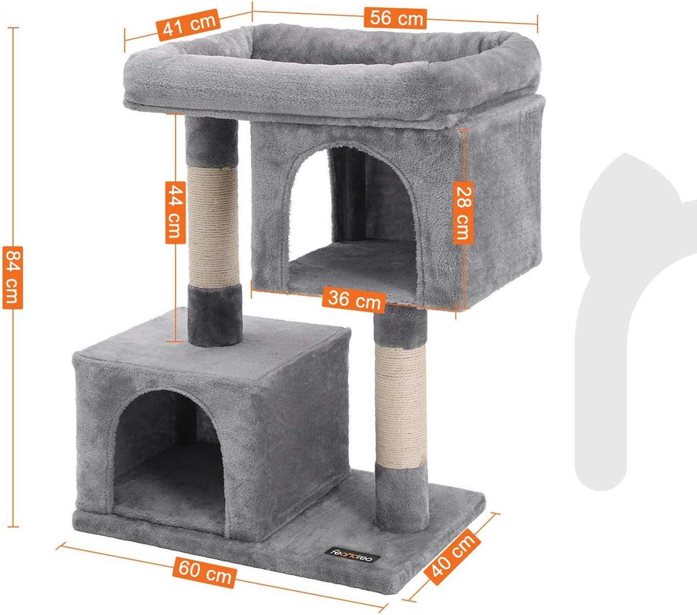 FEANDREA Ansamblu de joaca pentru pisici, plus si sisal, 2 ascunzatori si platforma mare, 60x40x84 cm, gri Household NewTrend