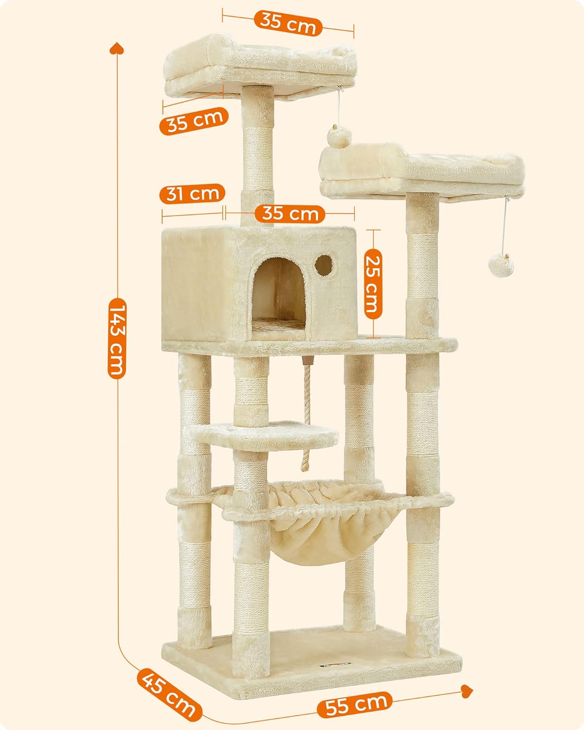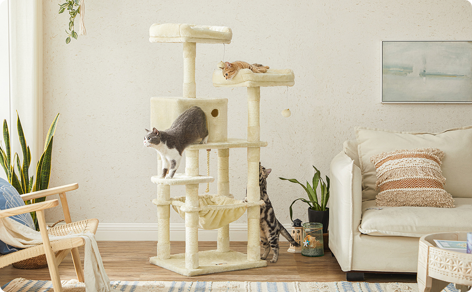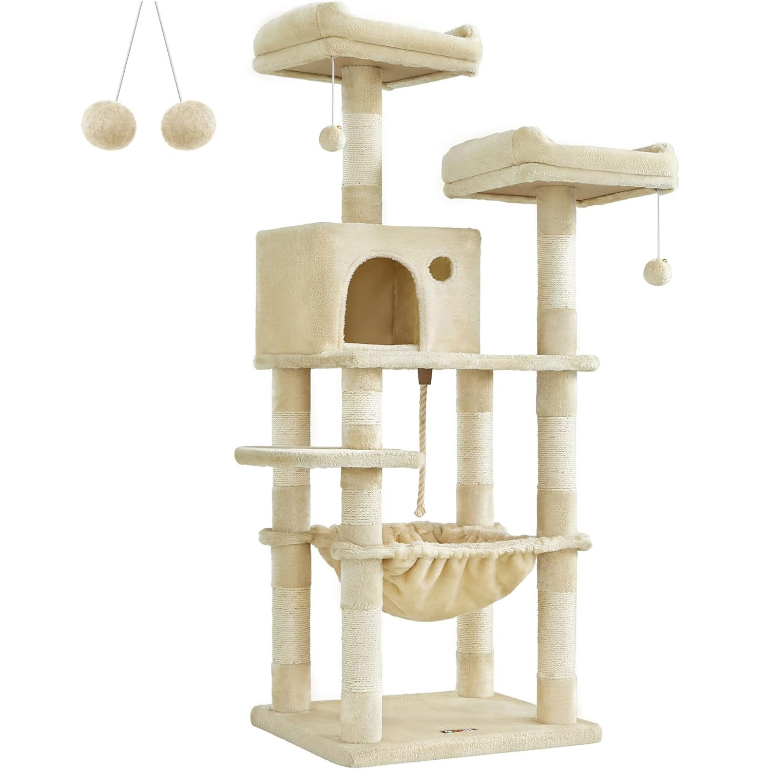 FEANDREA Ansamblu de joaca pentru pisici, tip copac, cu 3 culcusuri si ascunzatoare, 55x45x145cm, bej Household NewTrend