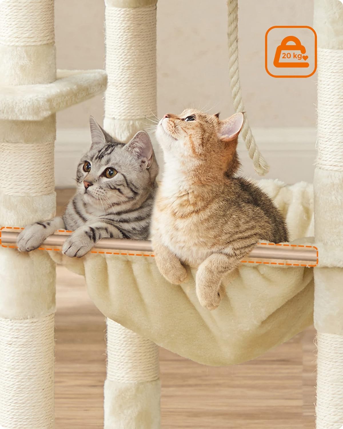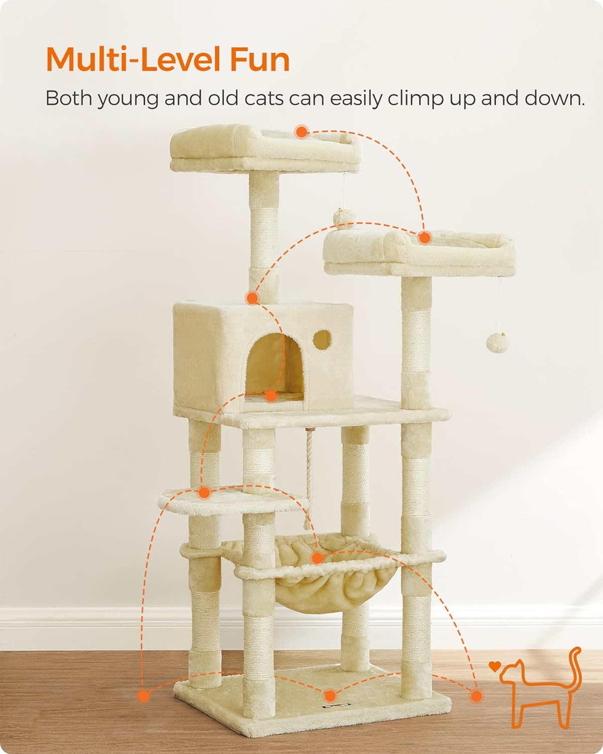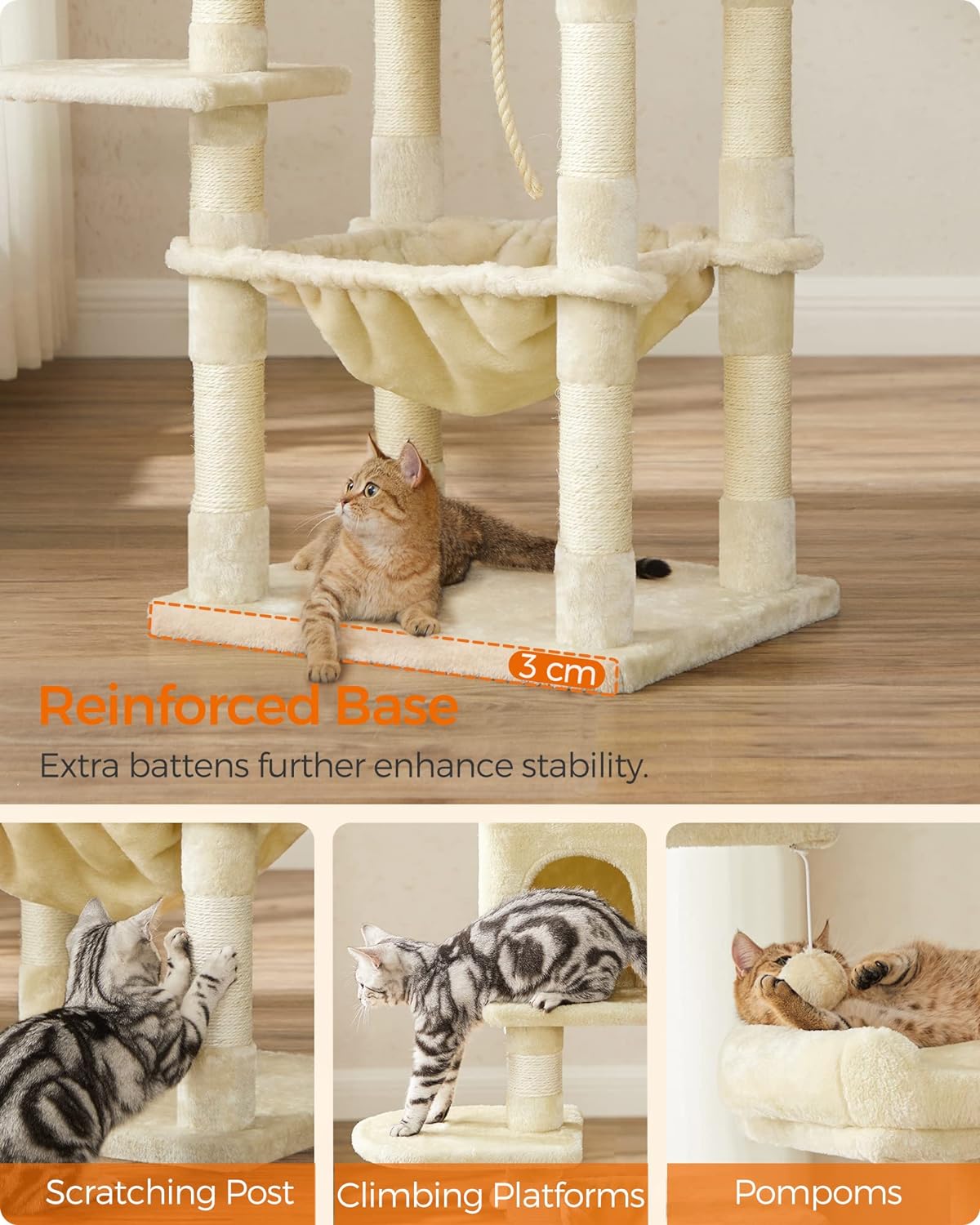 FEANDREA Ansamblu de joaca pentru pisici, tip copac, cu 3 culcusuri si ascunzatoare, 55x45x145cm, bej Household NewTrend