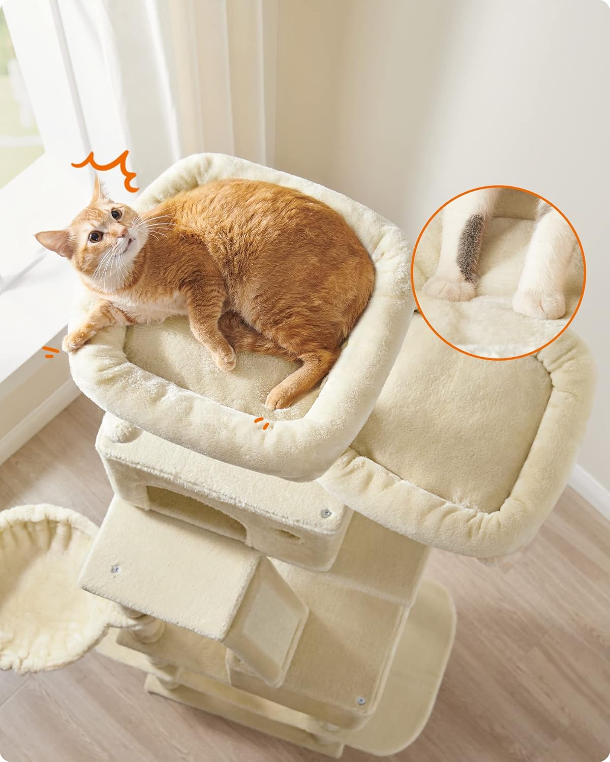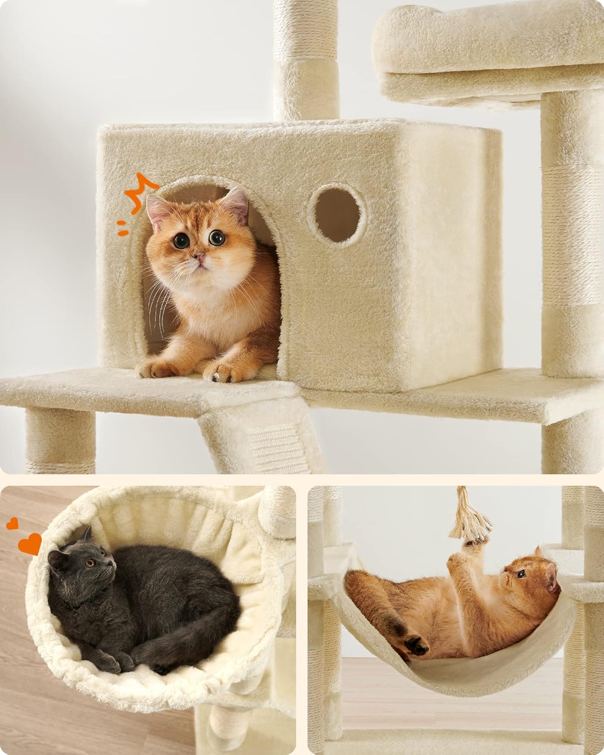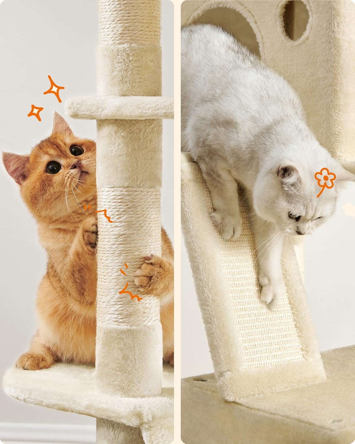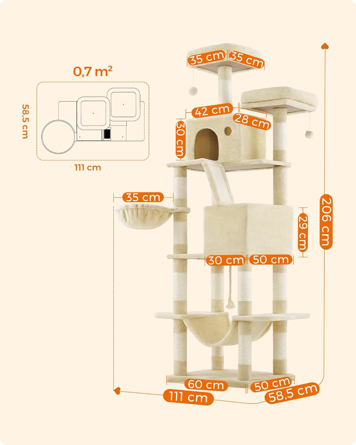 FEANDREA Ansamblu de joaca pentru pisici, tip copac, XXL, 13 stalpi de zgariat, 2 ascunzatori, 60x50x206cm, bej Household NewTrend