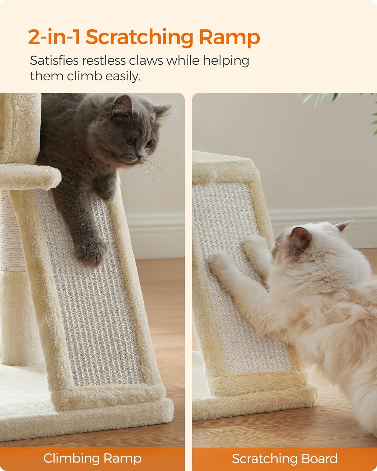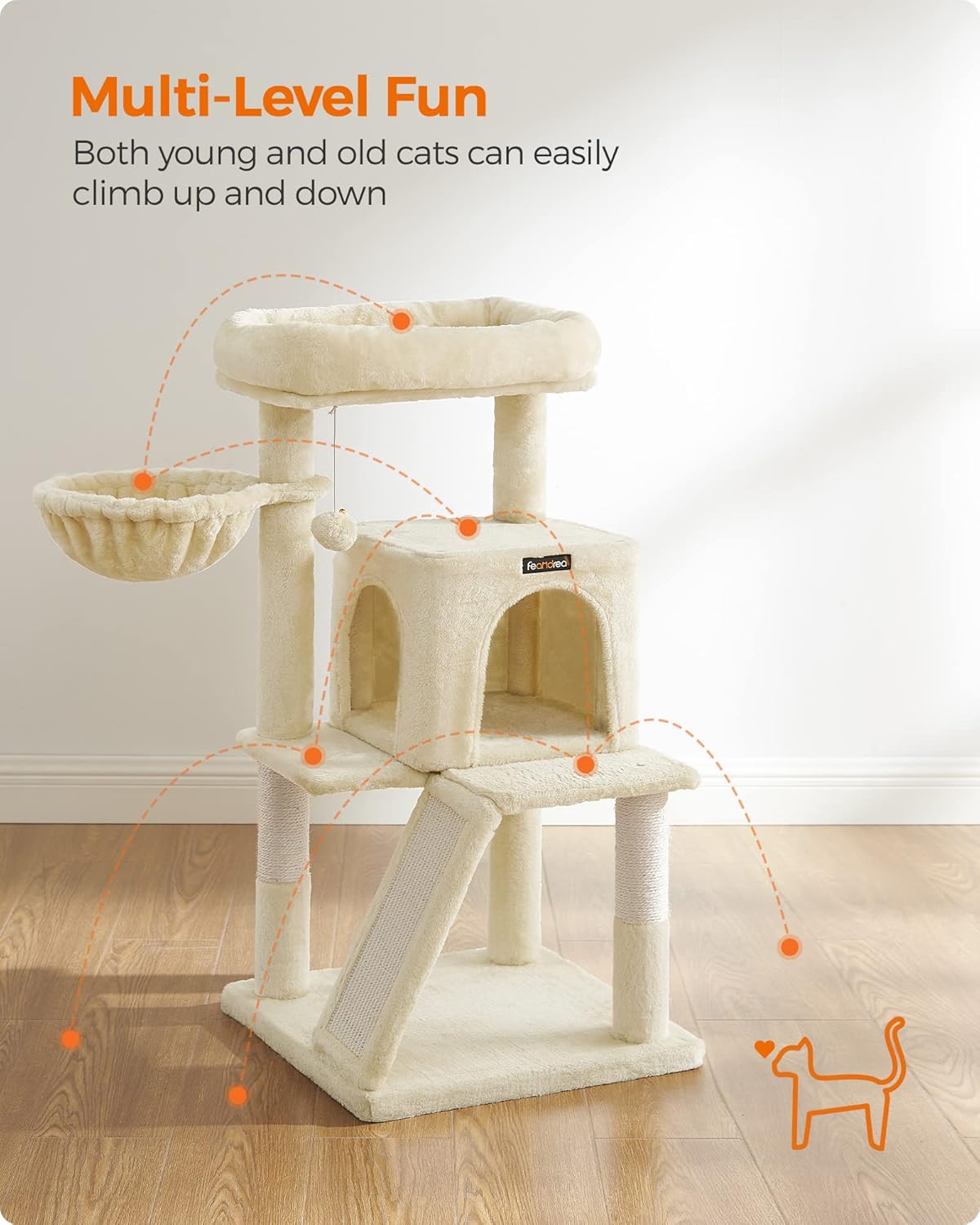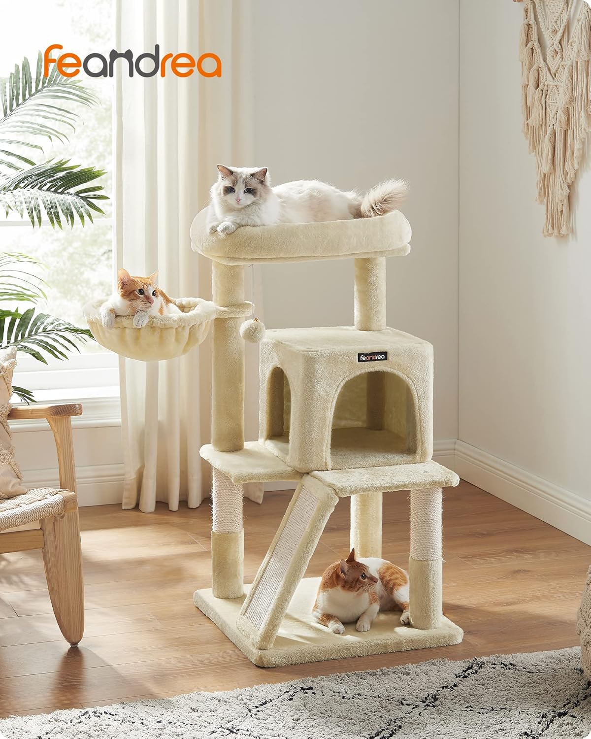 FEANDREA Ansamblu de joaca pisici, tip copac, 2 culcusuri, ascunzatoare, 48x48x96 cm, bej Household NewTrend