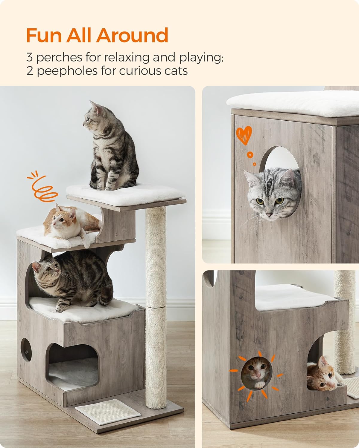 FEANDREA Ansamblu de joaca pisici, tip copac, din lemn, 66x40x86 cm, gri Household NewTrend