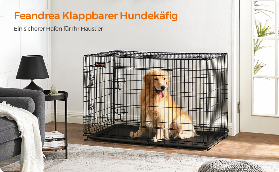 FEANDREA Cusca pentru animale, 2 usi, pliabila din metal, tava detasabila, XXL, 122x75x81cm, negru Household NewTrend