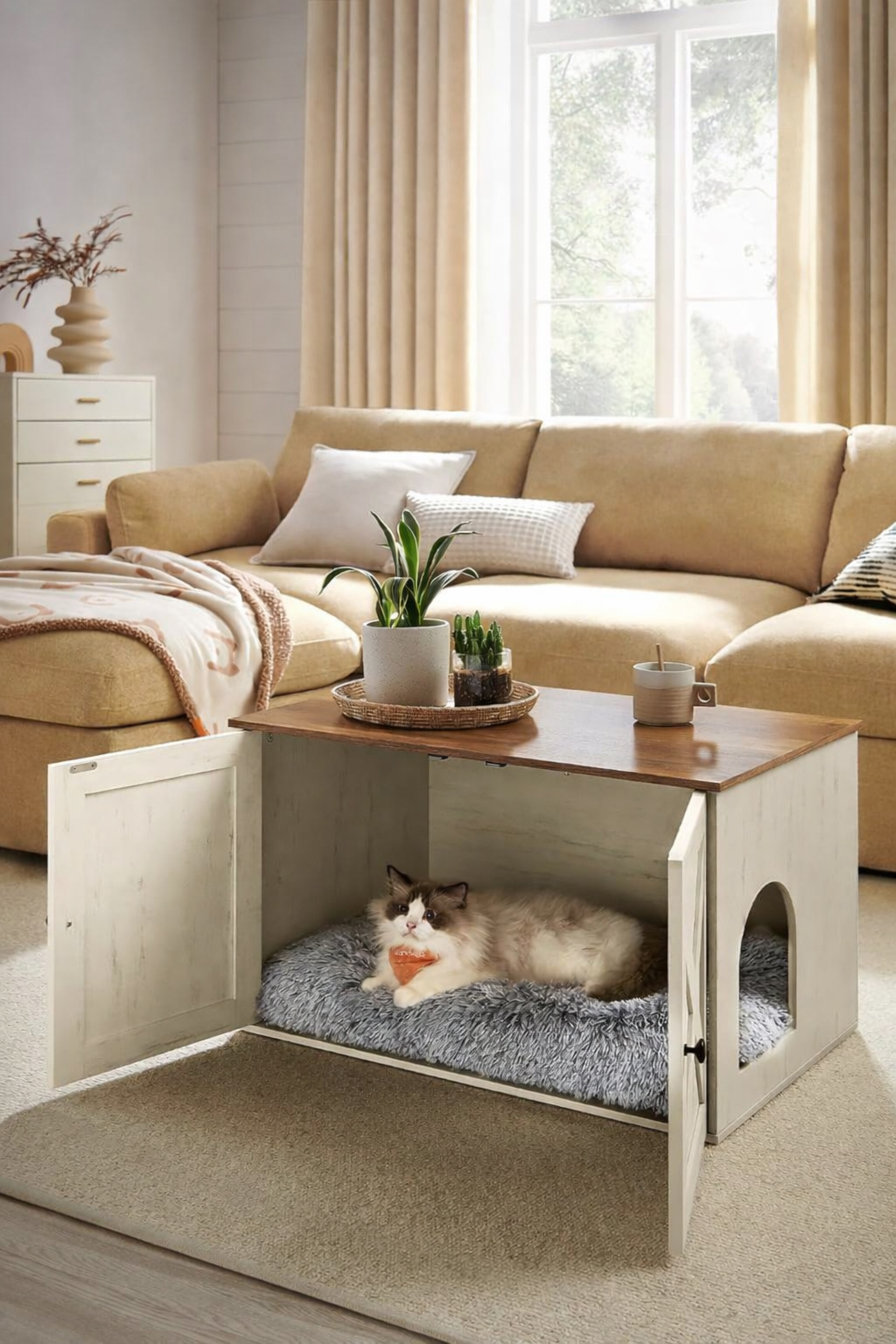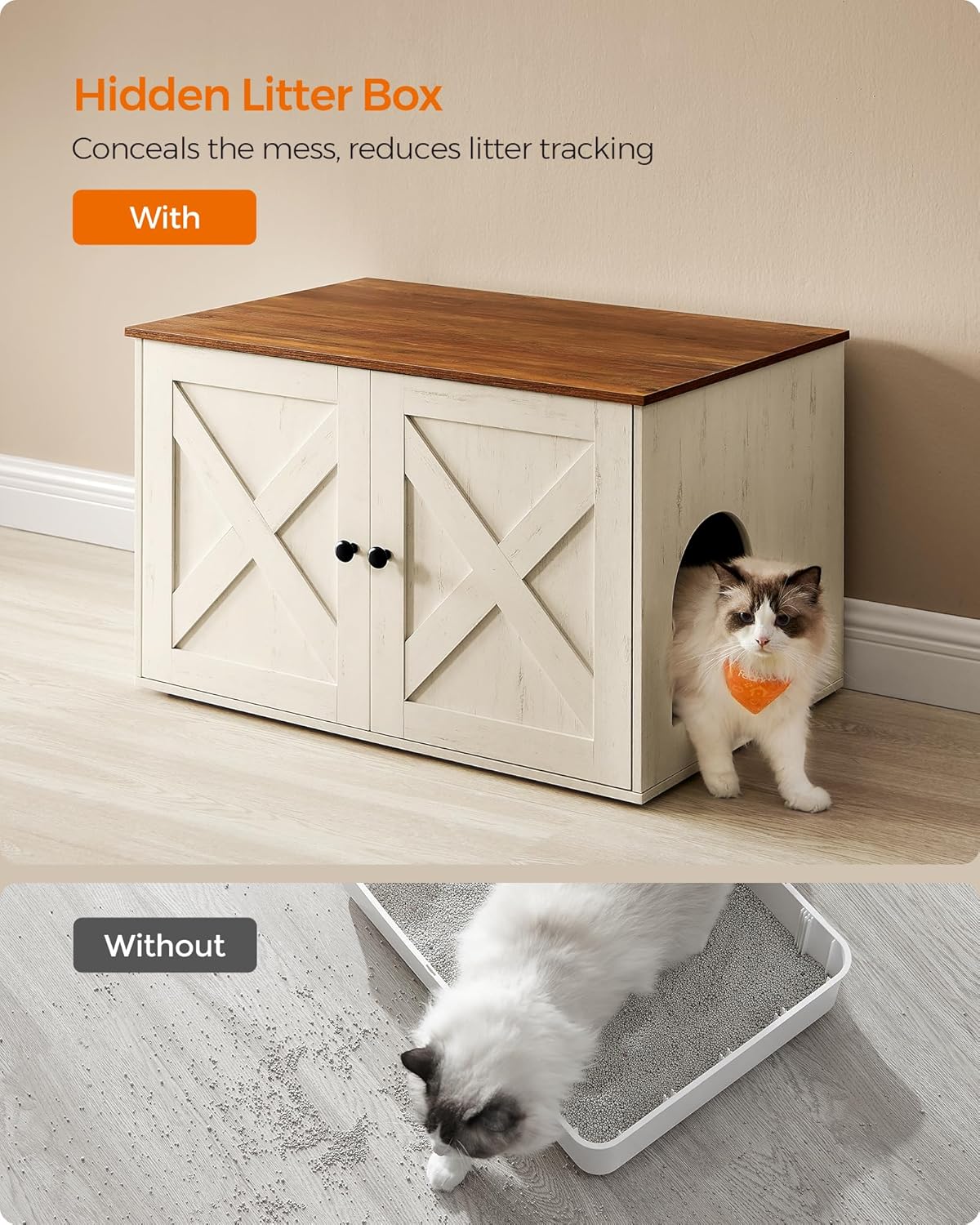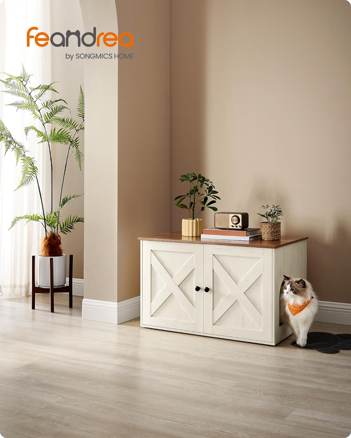 FEANDREA Litiera mascata tip mobilier cu usi model hambar, compartiment cu separator, 80x53x50 cm, alb Household NewTrend