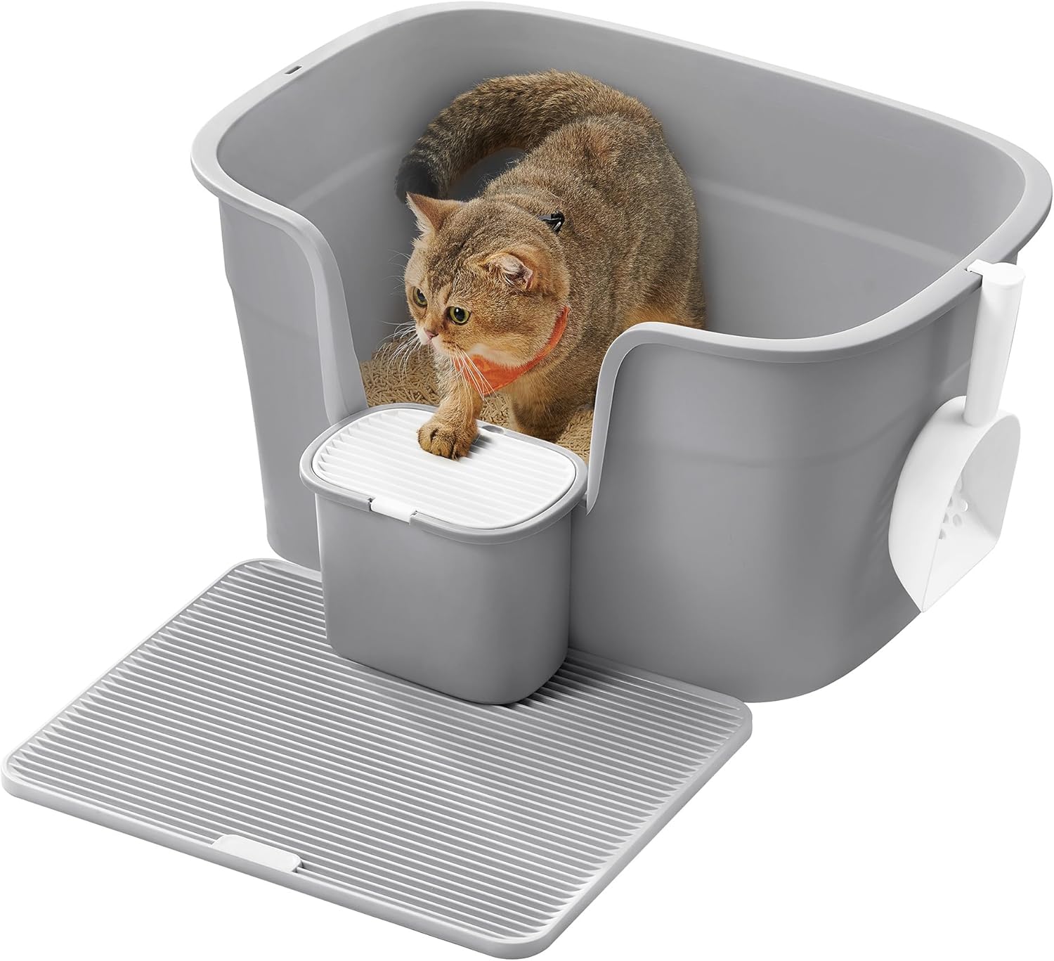 FEANDREA Litiera pisici XL cu pereti inalti, colector de nisip si cutie depozitare, 64x44x33 cm, gri Household NewTrend
