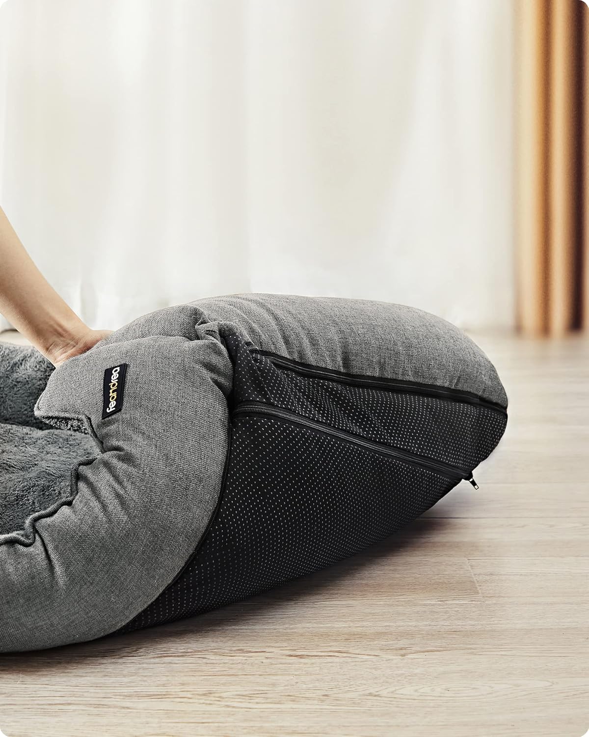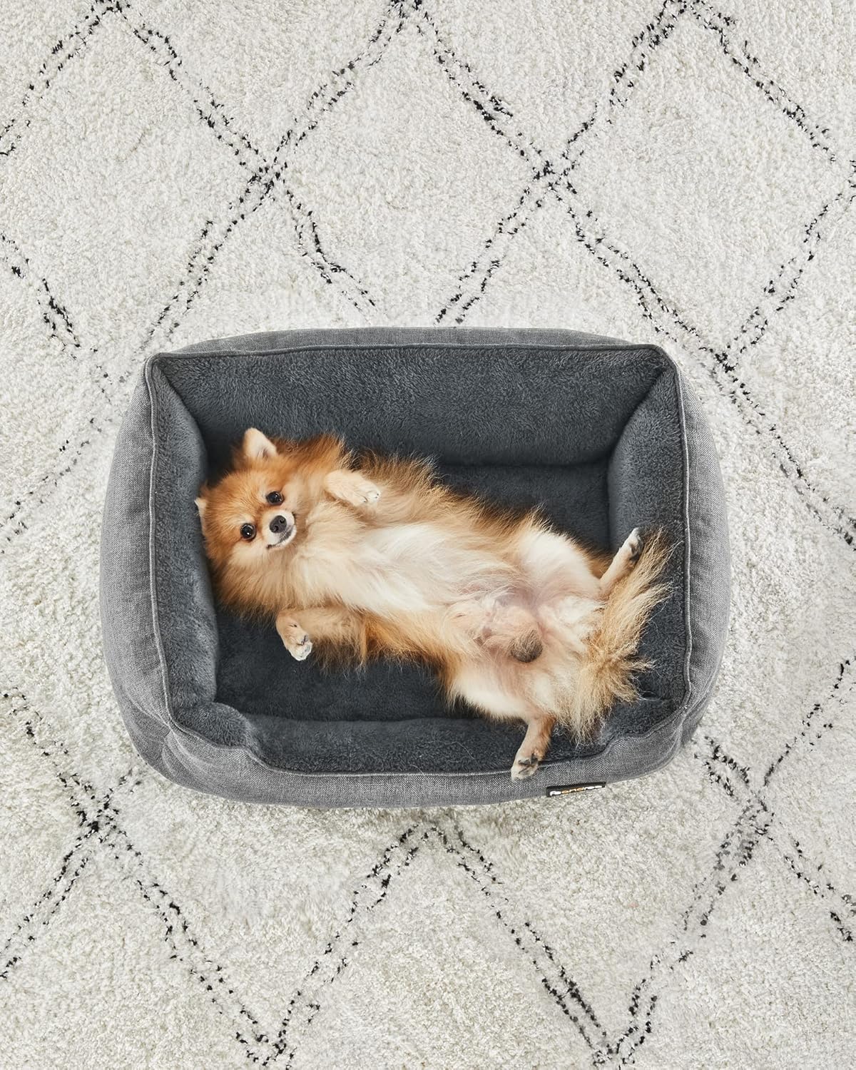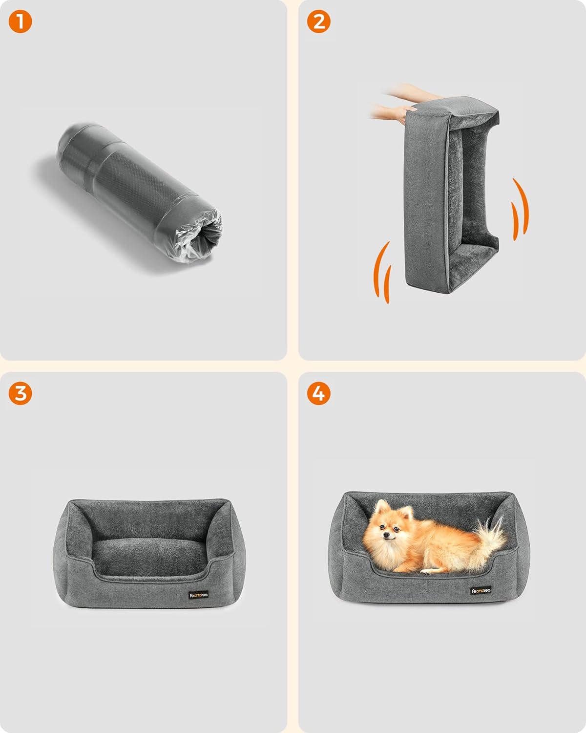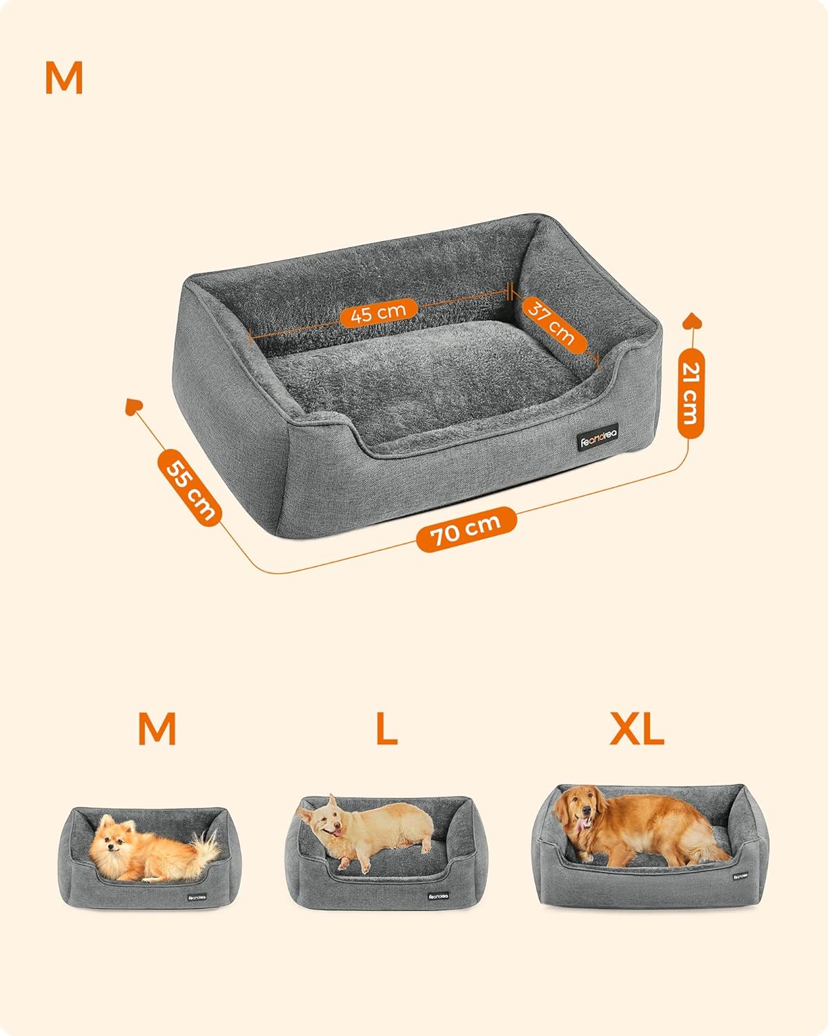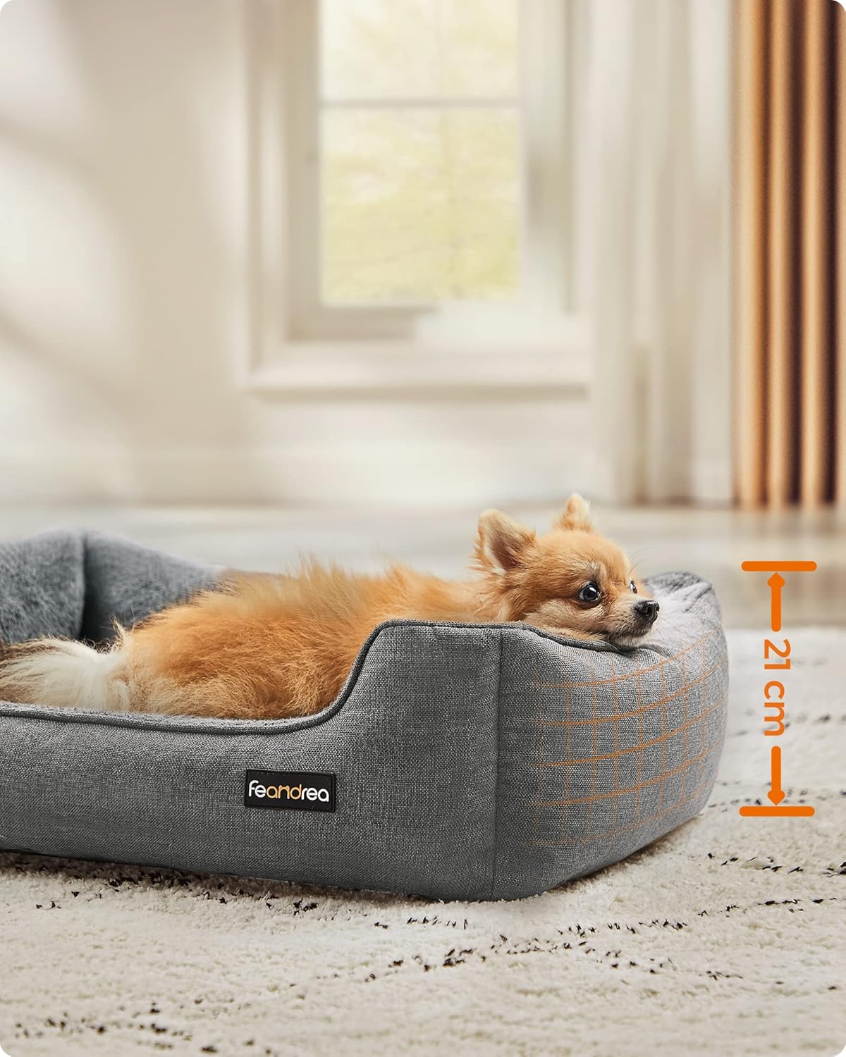 FEANDREA Pat pentru caini, cu margini groase ridicate, antiderapant, husa detasabila, marime M, 70x55x21 cm, gri Household NewTrend